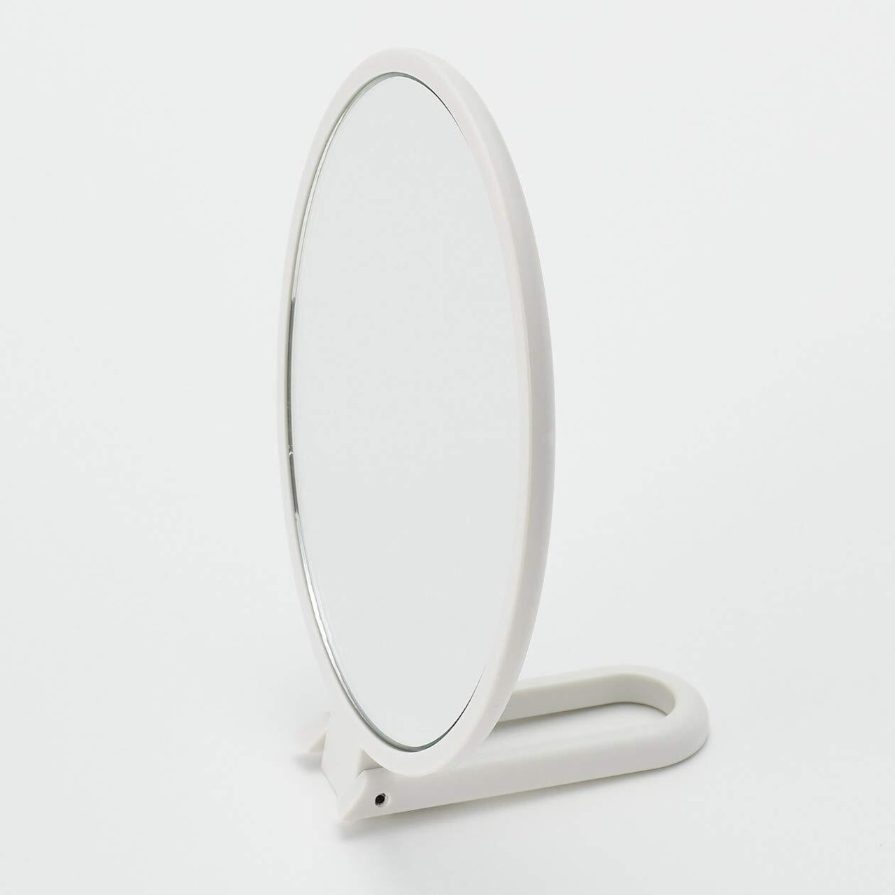 メイクの仕上げに便利な持ち手付きのミラーです。持ち手部分を折りたたんで、スタンドミラーとして使うことができます。