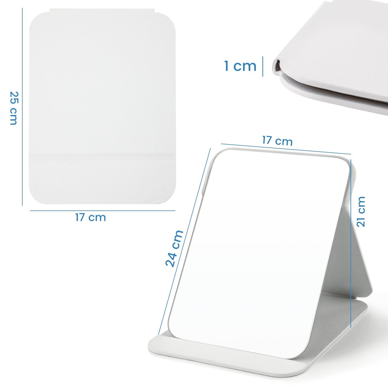 OWLKELA 25*17cm卓上鏡 大きめのスタンドミラー 割れない手鏡 持ち運びに便利な化粧鏡 コンパクトおりたたみ鏡 PUレザー Lサイズ ホワイト