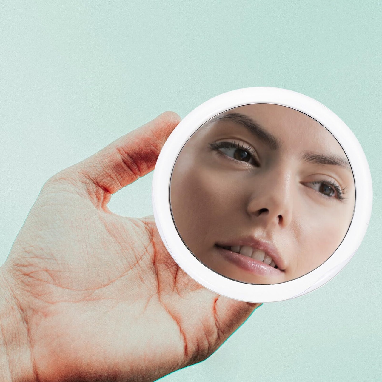 【円形ガラスミラー、高精細な映像】 円形のガラスミラーは高精細な映像を提供し、顔全体をくっきりと映し出します。日常のメイク確認やメイク直しに最適で、いつでも美しい仕上がりをサポートします。10cmのサイズで、持ち運びにも便利です。