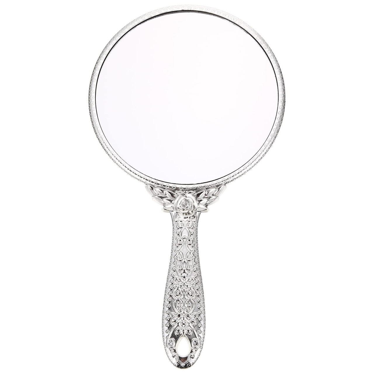 Frcolor 手鏡 手鏡 コンパクト ハンドミラー 化粧鏡 おしゃれ 化粧ミラー 手持ちメイクアップミラー コンパクト 携帯便利 化粧 サロン 美容院(銀色)