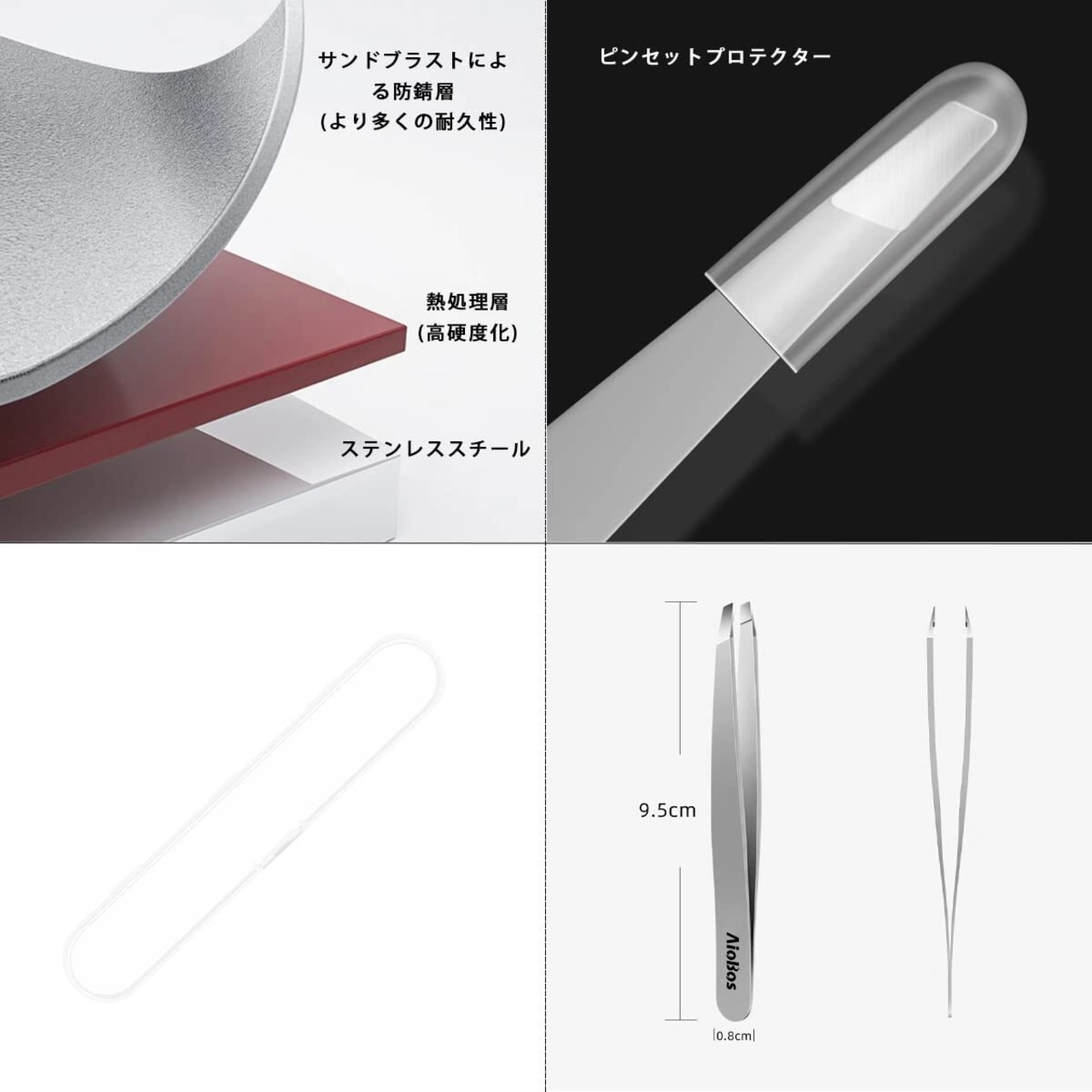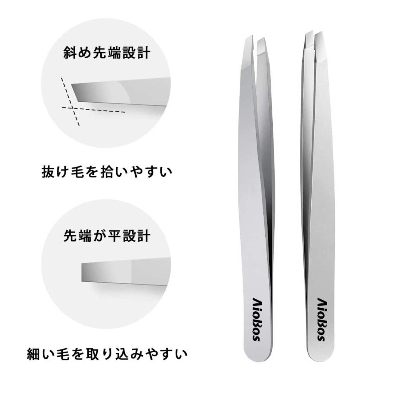 AioBos 毛抜き 先斜めで ピンセット 精密 熱処理済み サンドブラスト 眉毛抜き 鼻毛 ヒゲ とげぬき 処理 男女兼用 収納ケース 毛が簡単に正確に毛を抜く