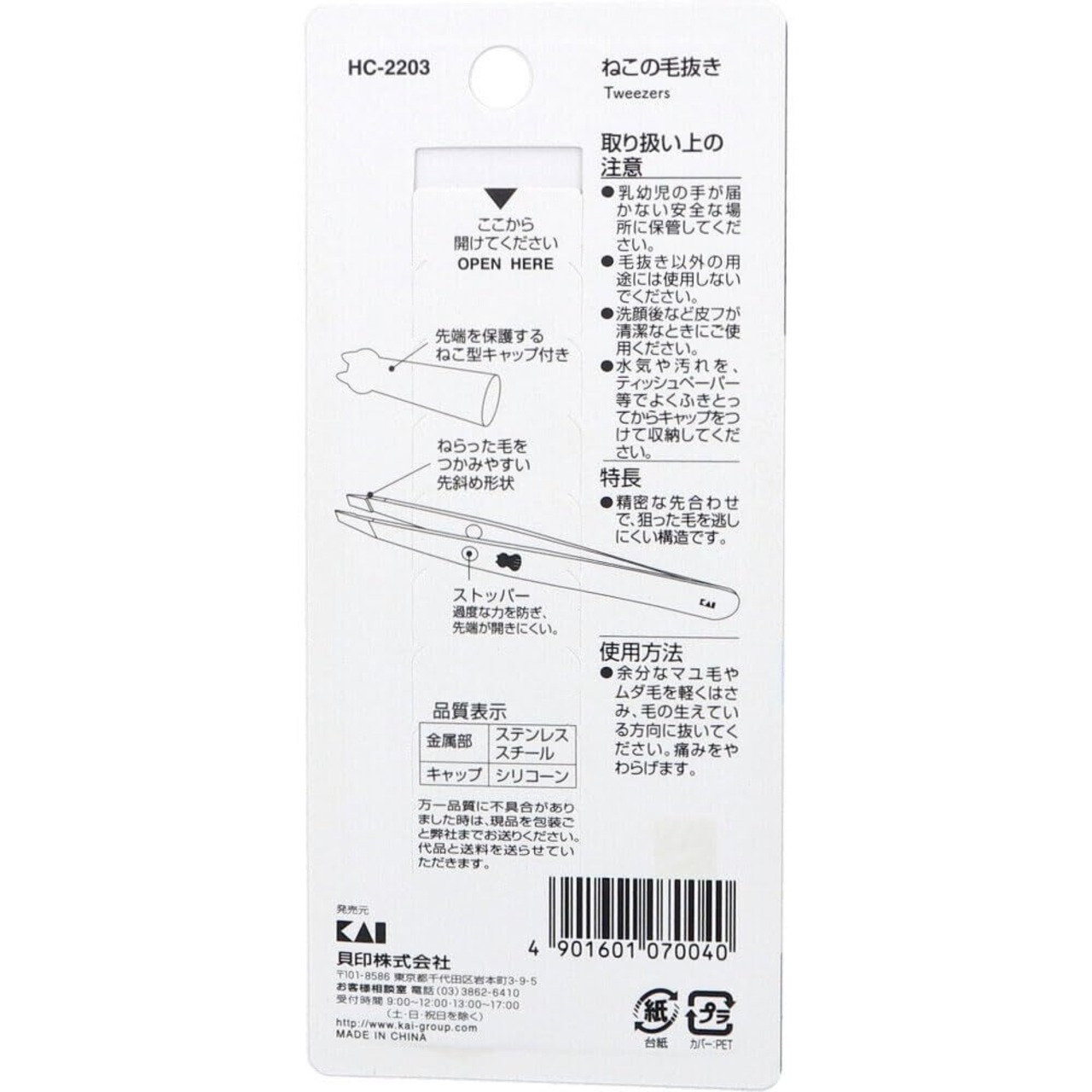 貝印(Kai Corporation) KAI ねこ の 毛抜き 先斜 シルバー ピンセット用 キャップ付 日本製 HC2203