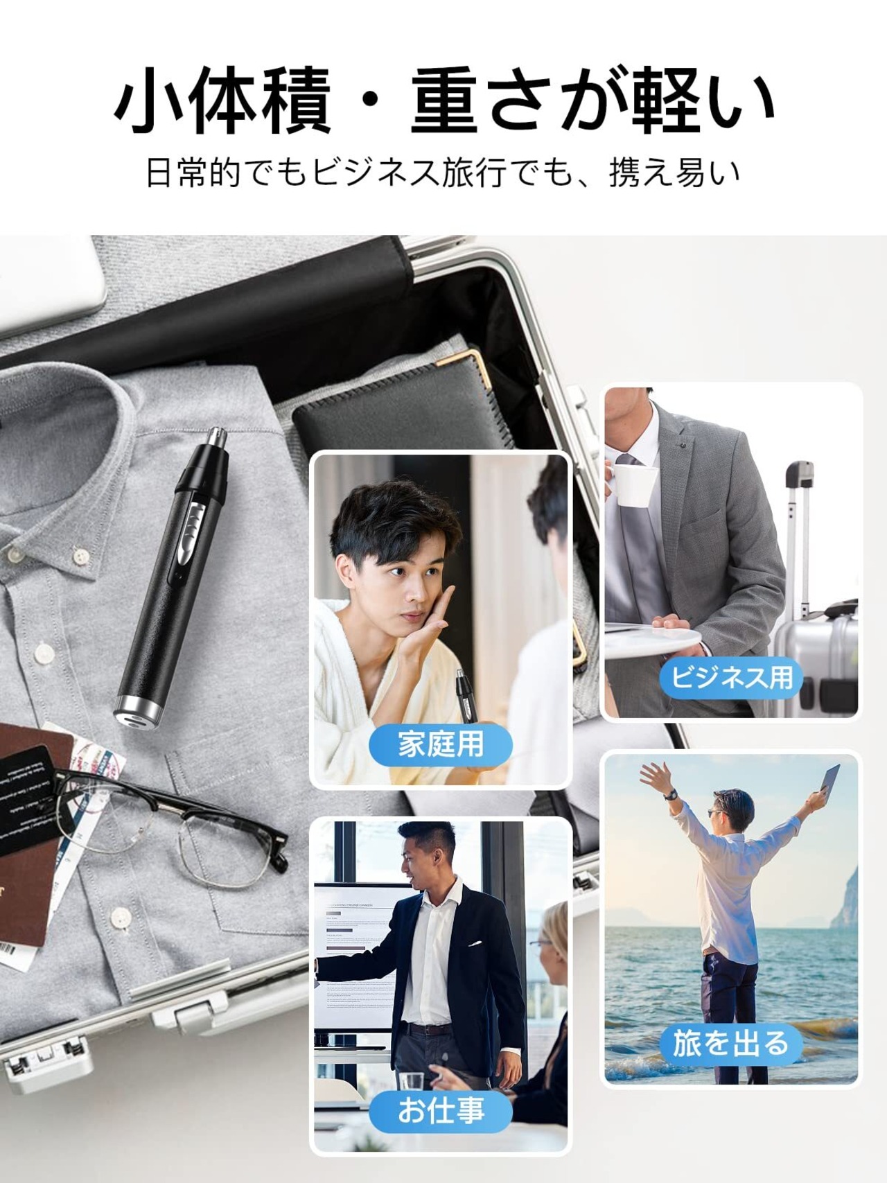 【ギフト最適・グッドチョイス】この男女兼用の充電式鼻・耳毛カッターのカラーはクラシックブラックを使って、傷のつきにくいメタルボディ技術を採用しております。手に取ると、まるで芸術品の用な美しさです。 シンプルでスタイリッシュなハンサム鼻毛そり メンズがひとつになりました。そのため。この鼻毛カッター レディースは夫、妻、恋人、兄弟、家族への贈り物として最適です。