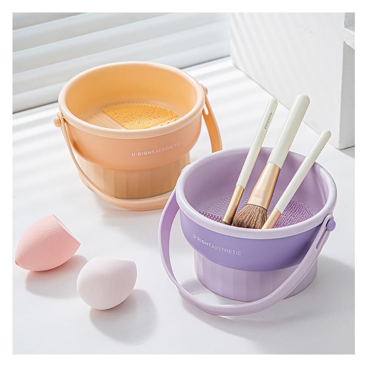 2点セット メイクブラシクリーナー 化粧ブラシ 洗浄 シリコン シリコン クリーナー 3in1 洗浄 乾燥 収納 おしゃれ ドライクリーニングスポンジ 洗浄カアップ 化粧筆洗浄(アプリコット)