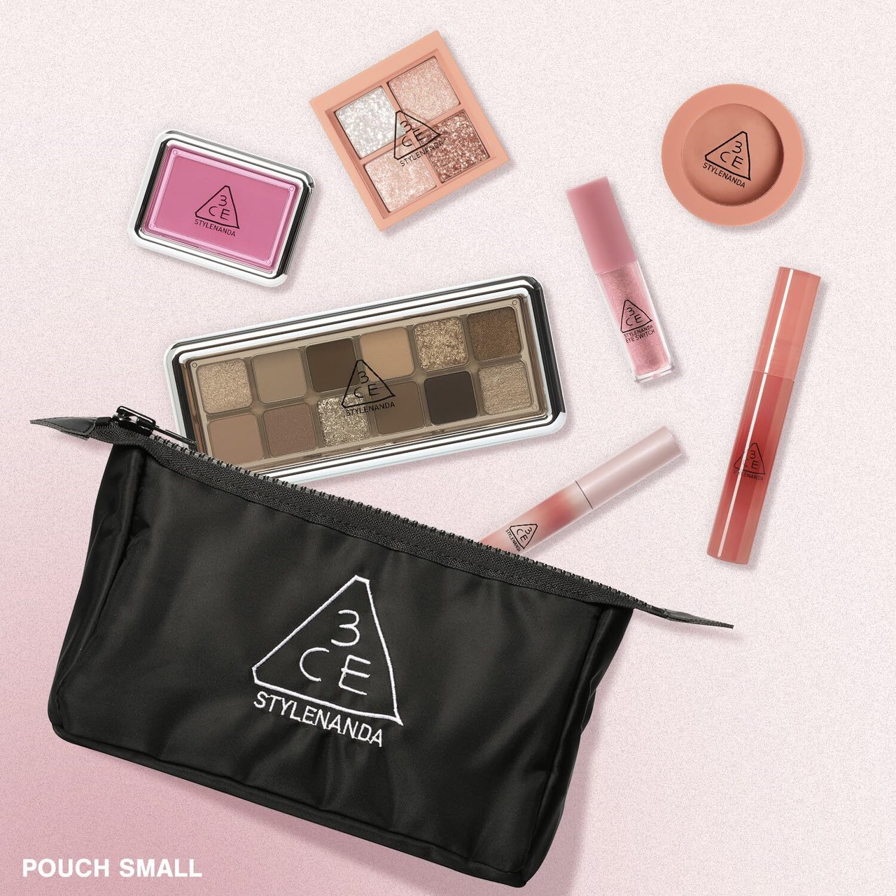 3CEロゴ入りのミニマルチポーチ。 ブラシまで入る実用的なサイズ感。小さめな作りなので、ミニバッグにもすっぽりと収まる。 サイズ:180mm×115mm×90mm