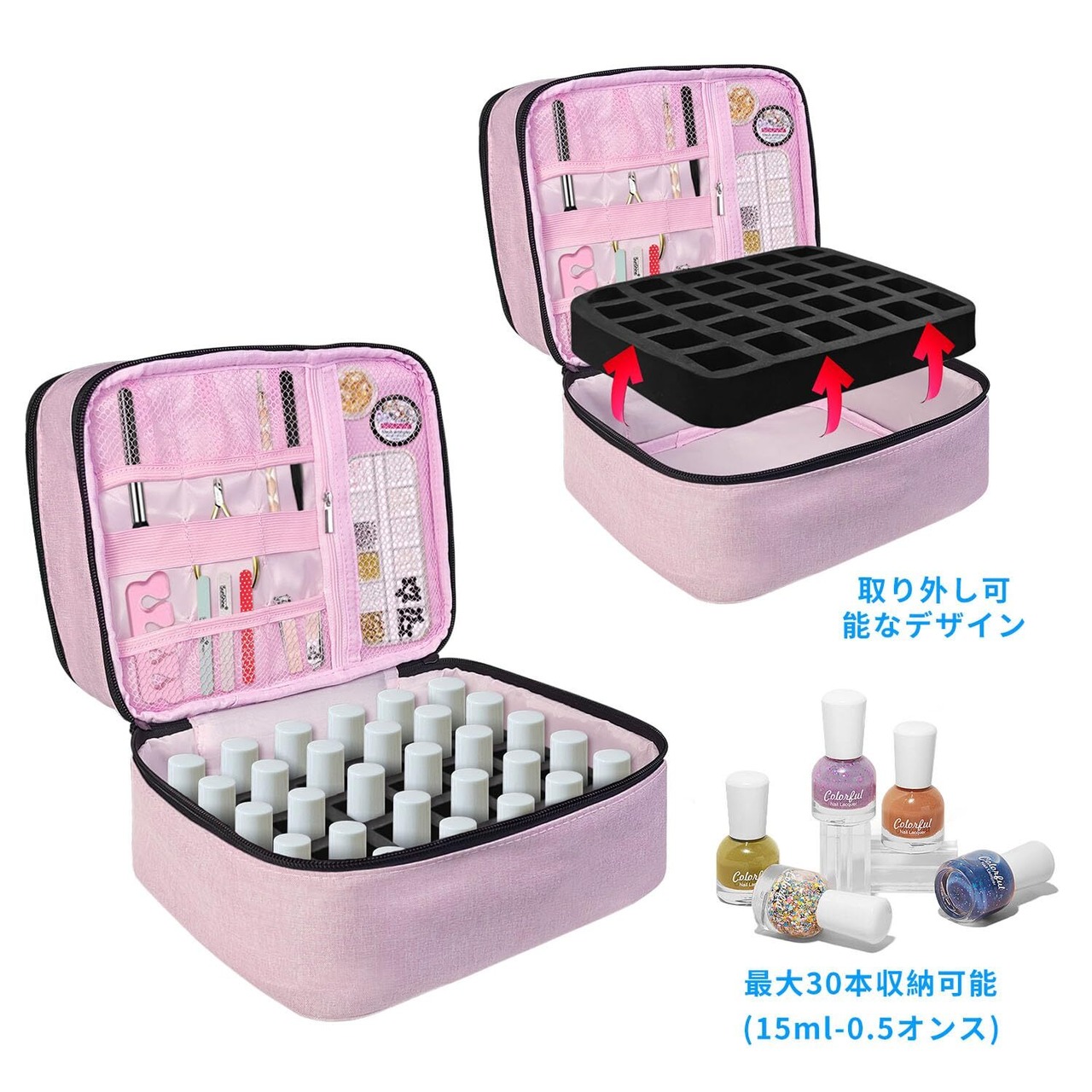 BOHEMIABY ネイル収納ボックス, ネイルボックスマニキュア納可能, ネイルポリッシュランプやその他のアクセサリー, プロフェッショナル ネイルバッグ, ネイル 収納 丈夫なハンドル (30グリッドピンク)