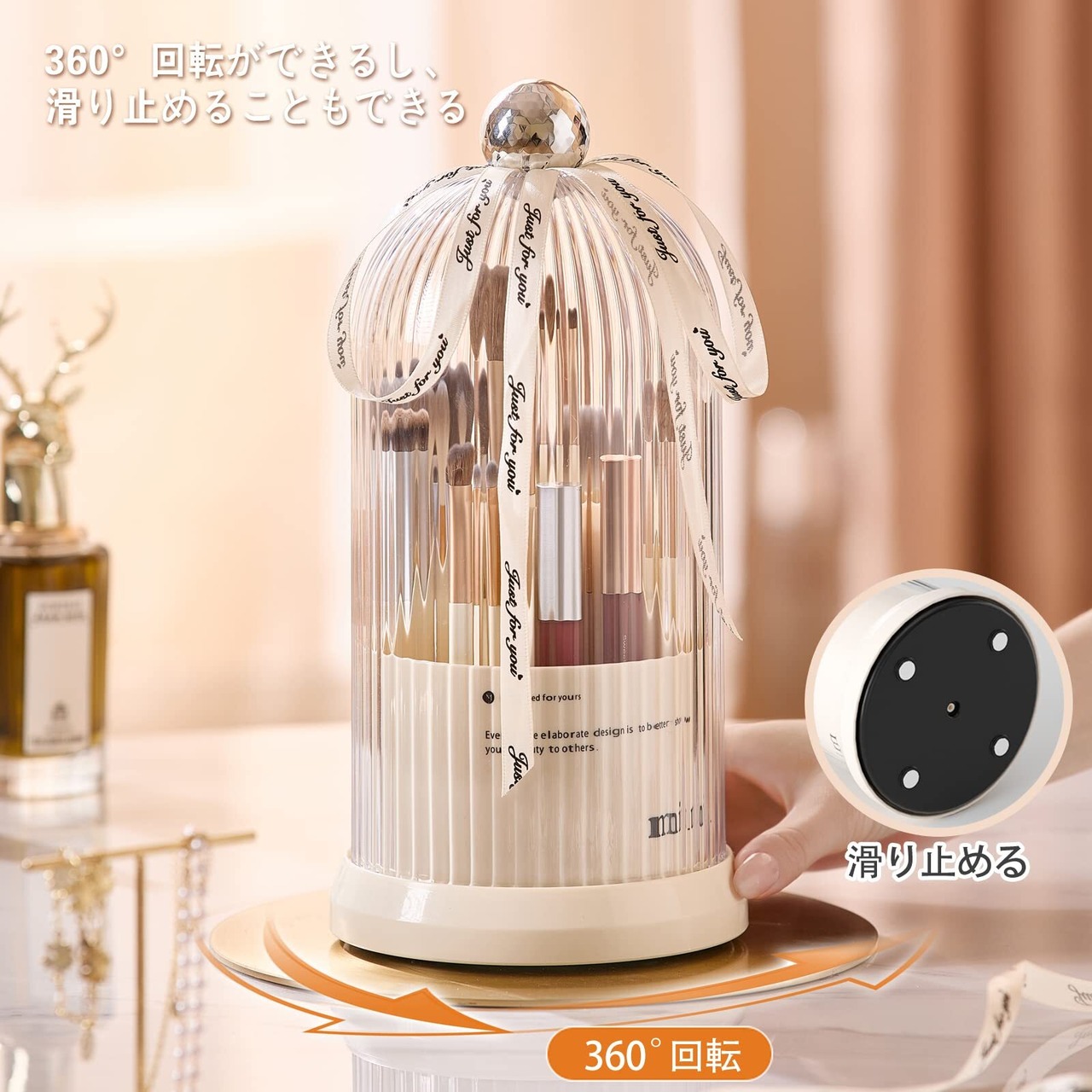 メイクブラシケース 蓋付き コスメ収納 360°回転 化粧品収納ボックス 防水防塵 メイクブラシ 収納 透明 メイクブラシスタンド VOLPONE