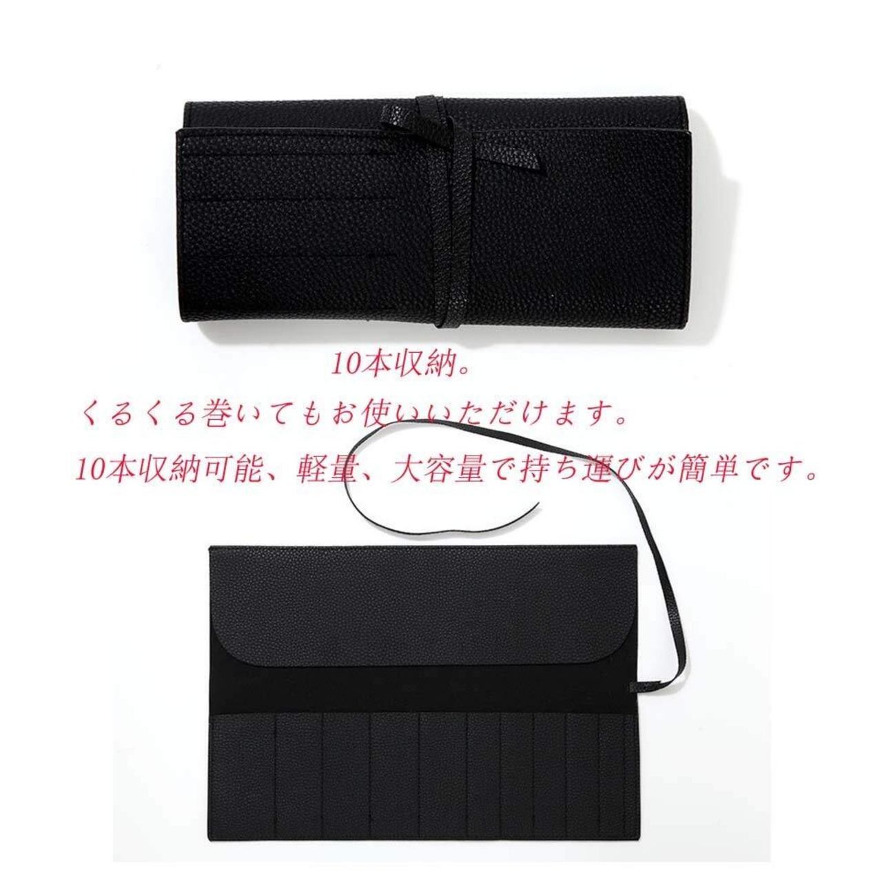 Dekori 化粧ポーチ メイクブラシポーチ 化粧筆ケース 巻き型 PU 大容量 ペンケース コスメポーチ 化粧ブラシポーチ ポータブル メイクアップ ブラシ オーガナイザー メイクアップ ブラシ ホルダー 多機能 旅行用 女性用 携帯便利 10本収納(ブラック)