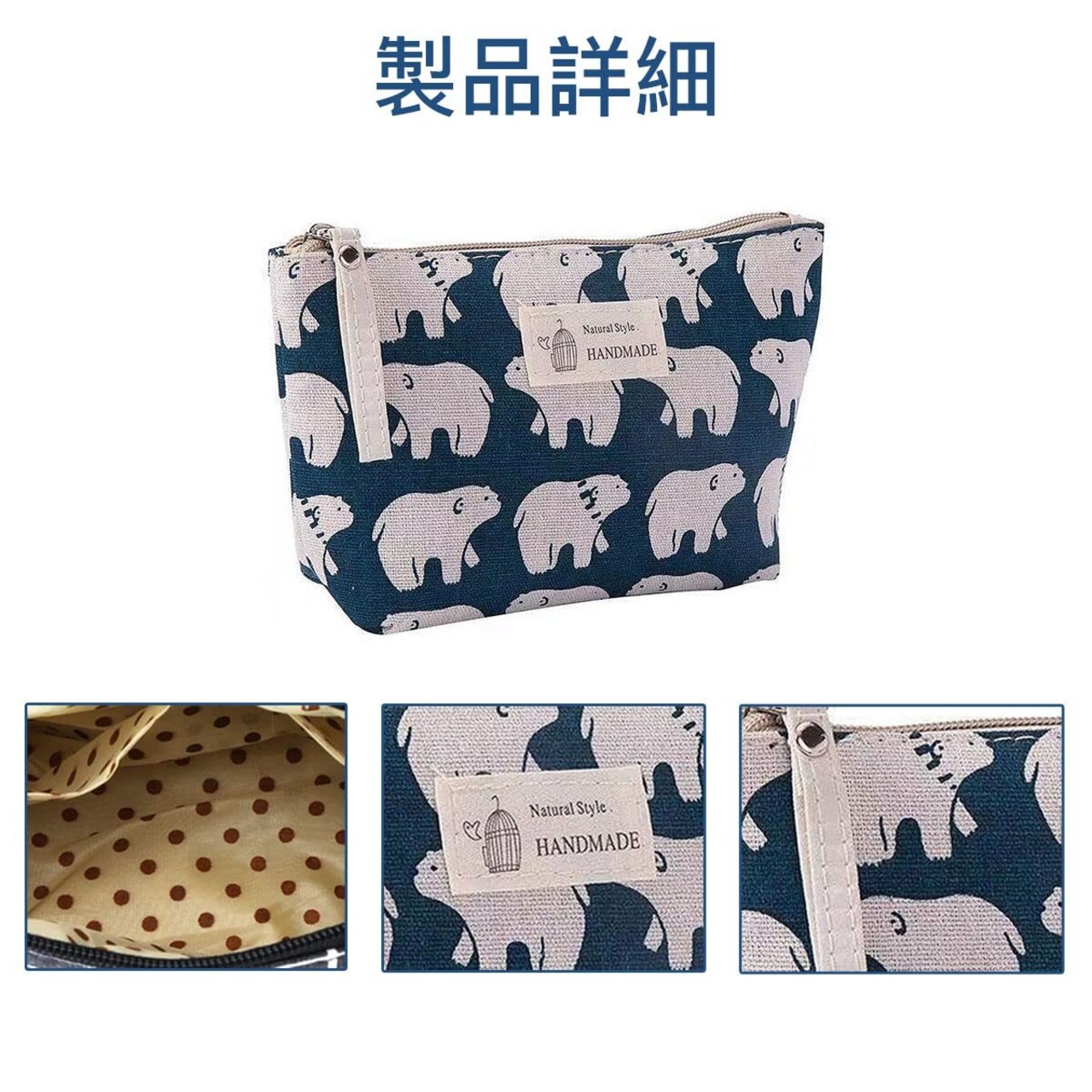 【可愛いデザイン】しろくまなどのキャラクターで満ち溢れた可愛いデザインの化粧ポーチ。裏地には異なる絵柄がある上、チャームもかわいくておしゃれです。