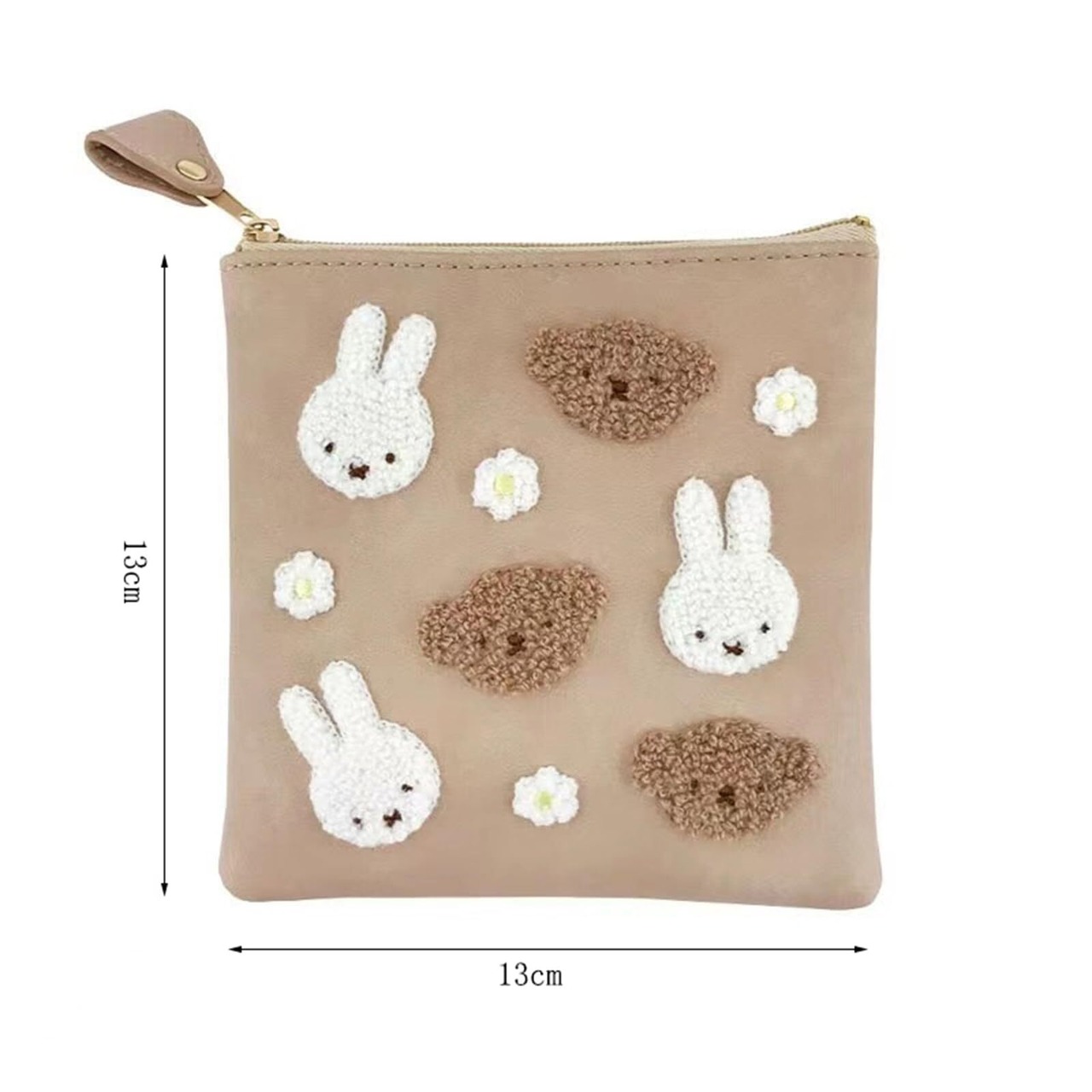 ミッフィー ミニ財布 ボリス スクエアバッグ 収納ポーチ 化粧ポーチ 小物入れ 持ち運び便利 刺繍 かわいい おしゃれ ベージュ