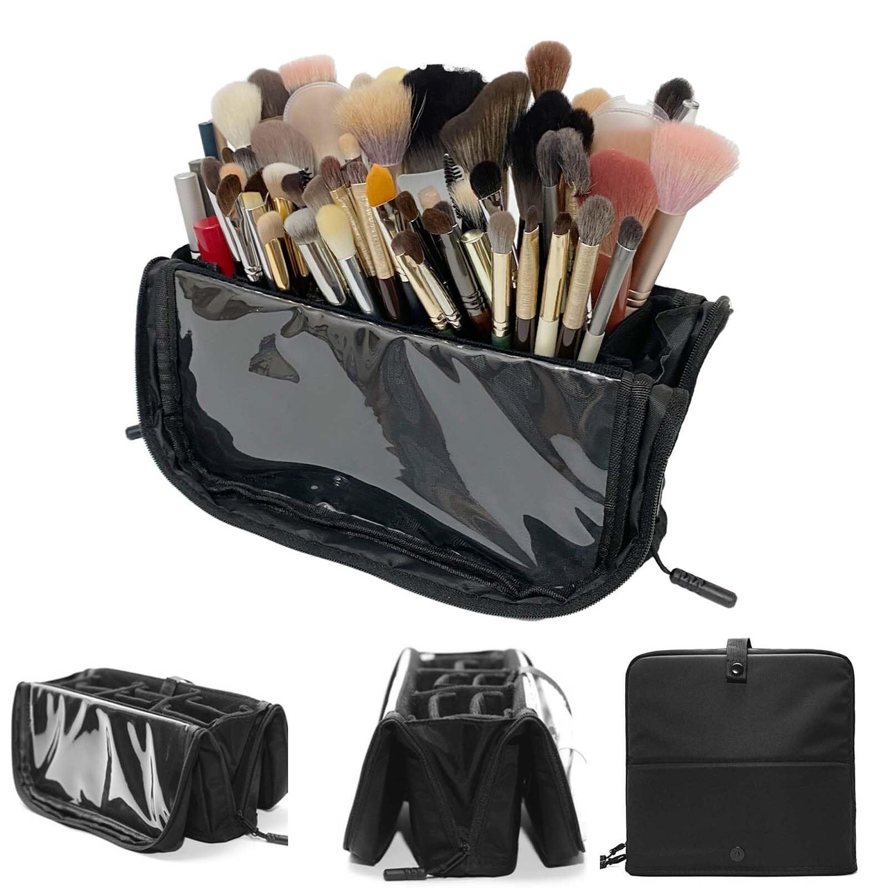 Yousimeiメイクブラシケース プロ メイクブラシ収納ポーチ ブラシスタンド 化粧筆入れ 化粧ポーチ 自立可能 仕切り板調節可能 大容量 旅行 携帯便利 透明カバー 蓋つき 50本以上入れ可能 お手入れしやすい 美容師収納 プロ仕様