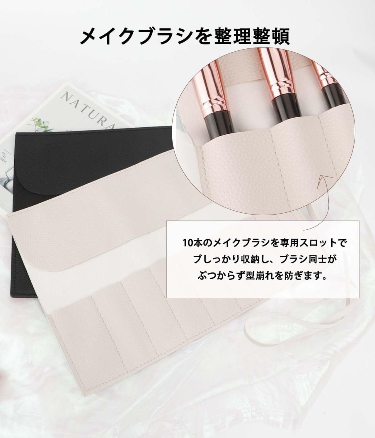 メイクブラシケース 巻き型 メイクブラシポーチ 化粧筆ケース ペンケース 持ち運び 携帯便利 コンパクト 旅行 (アイボリーホワイト)