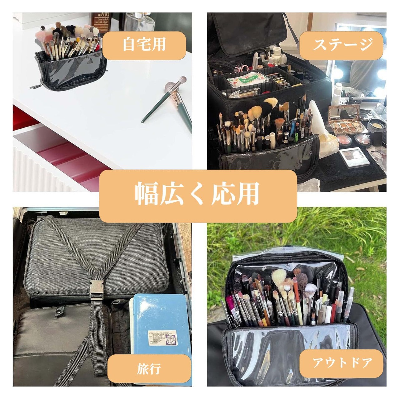 YINKE メイクブラシ収納ポーチ メイクブラシケース プロ 化粧筆入れ 化粧ポーチ 自立 仕切り板調節可能 大容量 旅行 携帯便利 透明カバー 蓋つき 80本以上入れ可能 お手入れしやすい プロ仕様 美容師収納(黒)