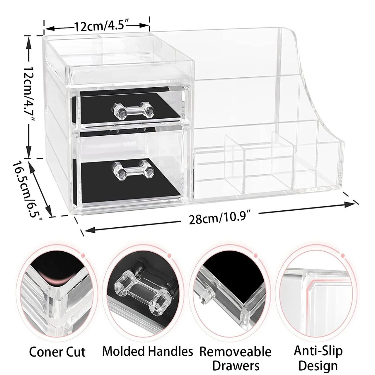 【材質】:高品質アクリル、5mmアクリル材料を採用して作って、耐久性がある透明化粧品収納ケースです。バラバラになりやすい小物を美しく収納でき、お部屋やオフィスに置くのにぴったりのアイテムです。
