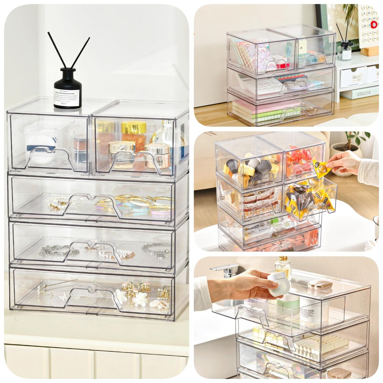 【透過性】透明なPET材質を採用して製作して、中身が一目瞭然、探しやすいし、整理しやすいです。透明引き出しの透過性も様々なホームスタイルによりよく溶け込み、ホームインテリアの一部になります。