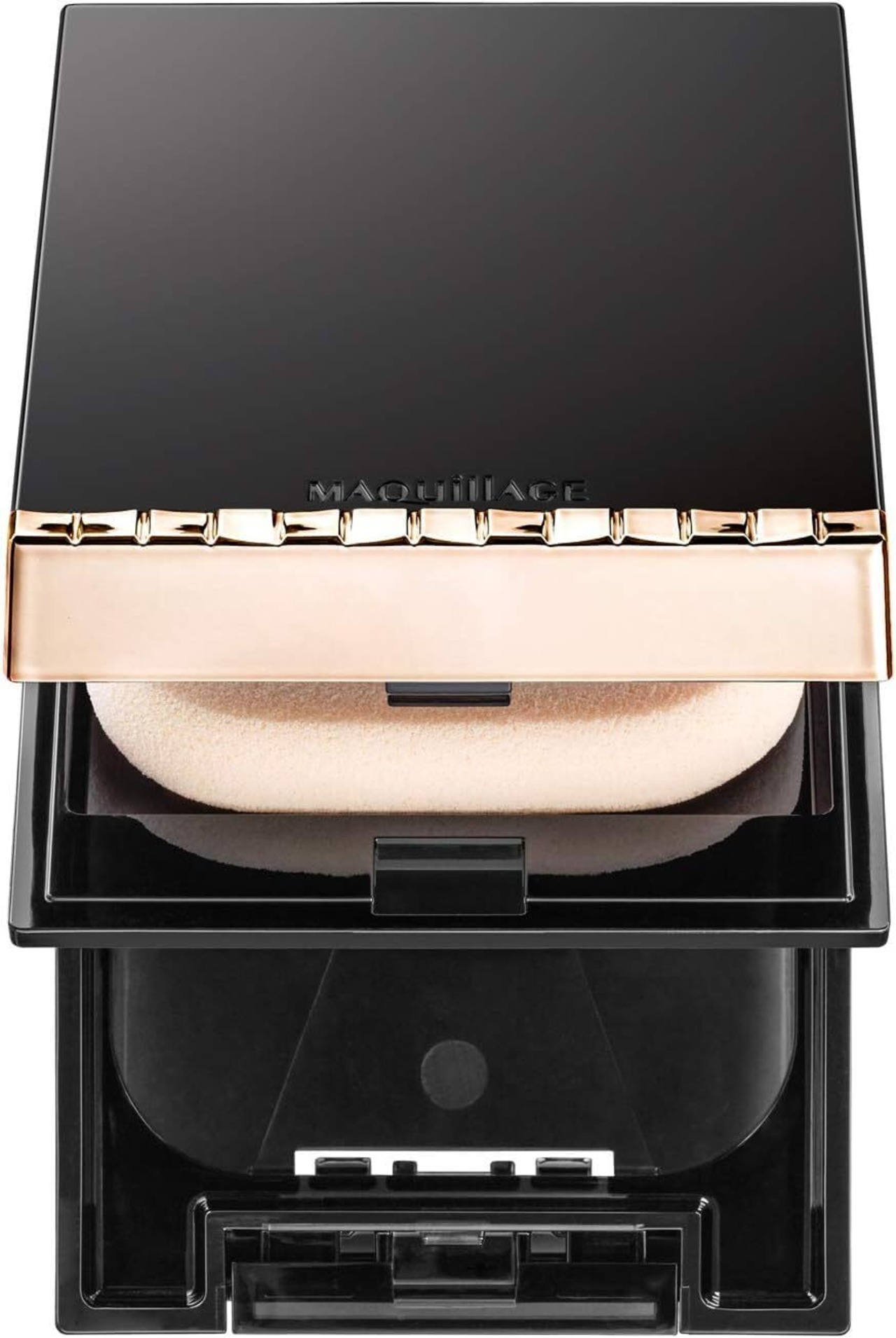 マキアージュのパウダリーファンデーションがセットできる小さめでスマートなコンパクトケース。