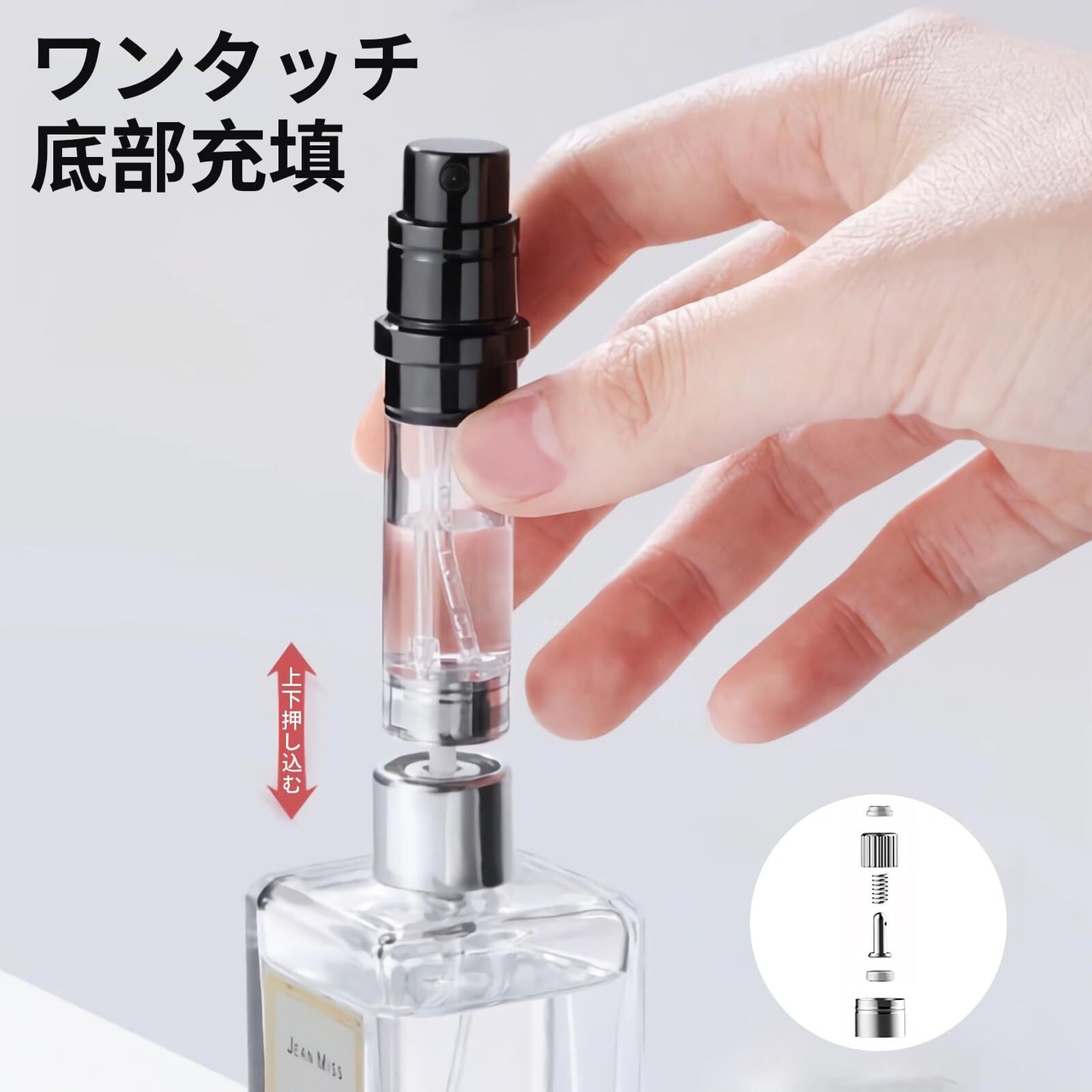 【超微細水ミスト・香水節約】ノズルは独特なデザインを採用し、カバーを押すと超微細水ミストが発生でき、押すたびに少量の香水を広範囲に噴霧でき、香水を一滴も無駄にしない!