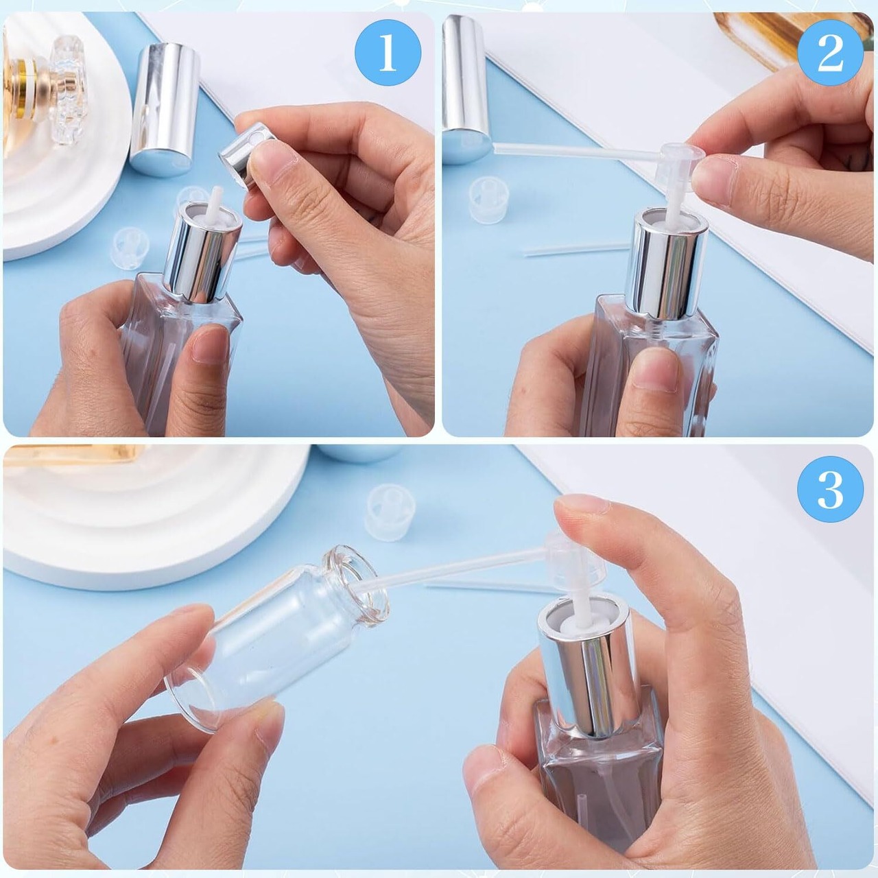 香水 アトマイザー 詰め替えノズル 20個セット 液体移送ポンプ コスメ用補充キット 漏れ防止ノズル 出張 旅行に便利 メイクアップツール 簡単安装