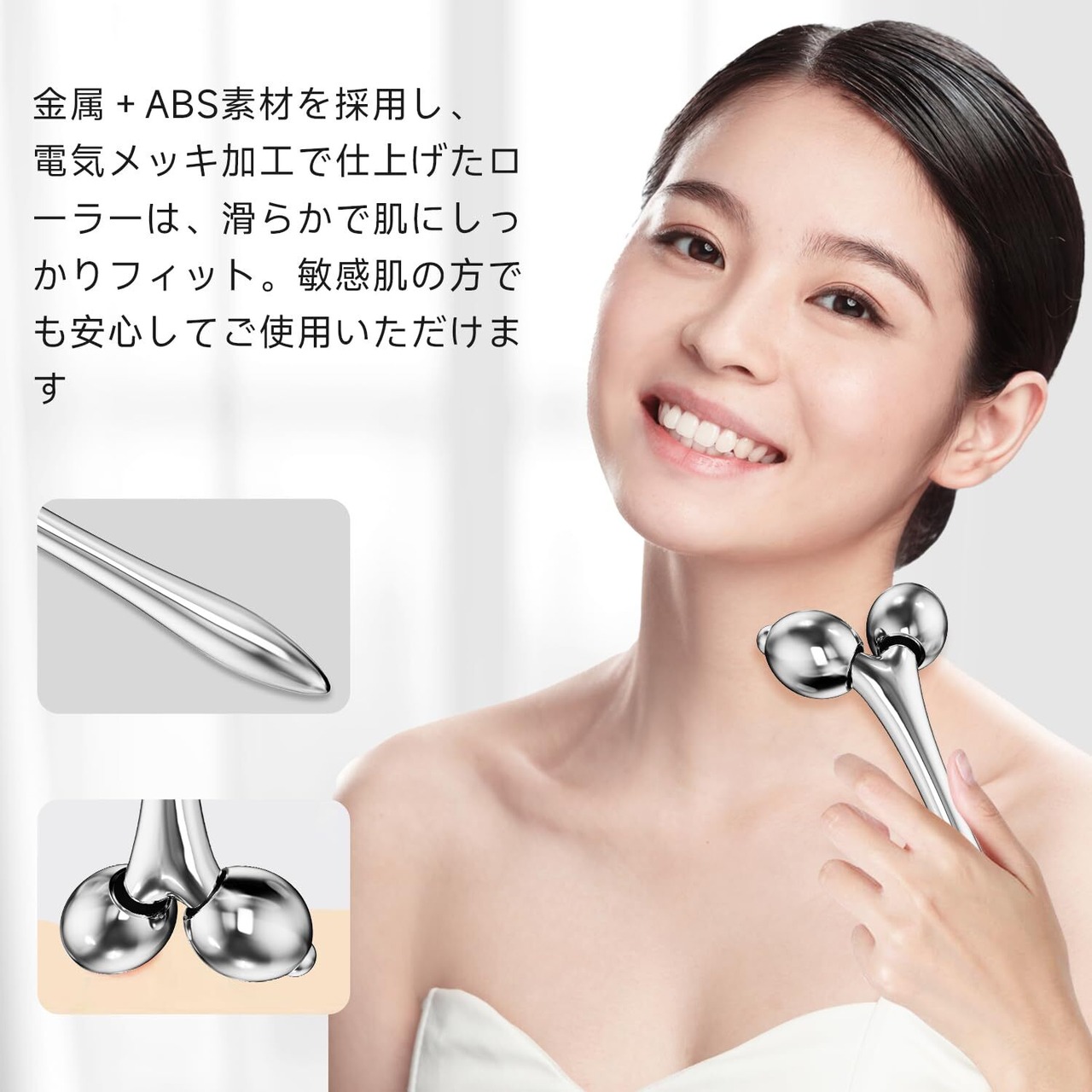 【Y型フレーム x 肌に優しいローラー】滑らかな動きで、あなたの肌のラインにぴったりフィット。Y型ローラーは握り心地が良好。肌に優しいローラーは、明確な引き締め効果を提供します。や顔のラインを引き締めるための美容ローラーに最適です。流線型の肌に優しいローラーは、優しくデリケートな肌を引き締め、完全にフィットします。