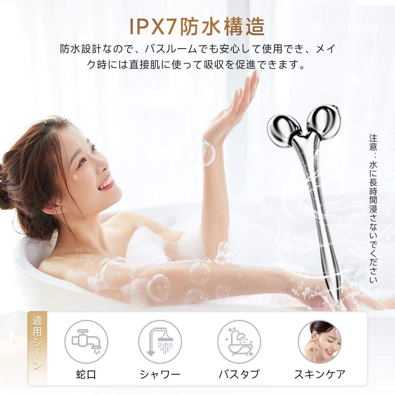 【多機能フェイシャルローラー】理想の小顔美容を実現。360度オールラウンド立体なだめるような技術を再現。ローラーの形状と角度を精密設計し、あらゆる方向へのスムーズな転がりを実現。顔だけでなく全身のあらゆる部位を揉みほぐし、引き上げ、つまむような立体感あるなだめるような可能。顔のリフトアップ効果に加え、首・二の腕・ウエストの余分な脂肪をすっきりさせ、ボディラインの引き締めをサポート。ご使用の際は、肌の上をゆっくり滑らせるように転がしてください。