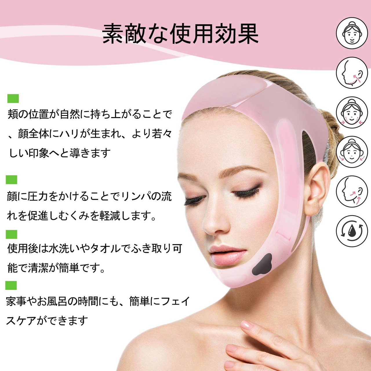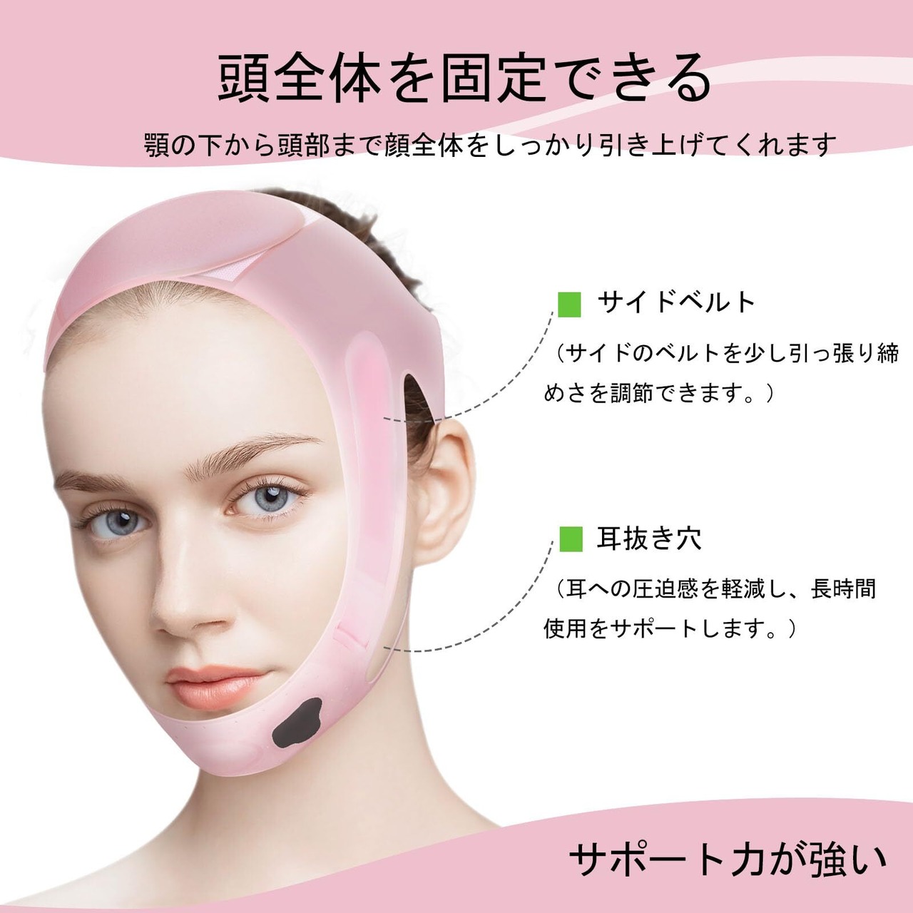 「素敵な使用効果」:v顔へ。顎の下から頭部まで顔全体をしっかり引き上げてくれるので、頬の位置が自然に持ち上がることで、顔全体にハリが生まれ、より若々しい印象へと導きますし、顔に圧力をかけることでリンパの流れを促進し、むくみを軽減することもできます。サイドのベルトを少し引き上げ、締めさを調節できます。