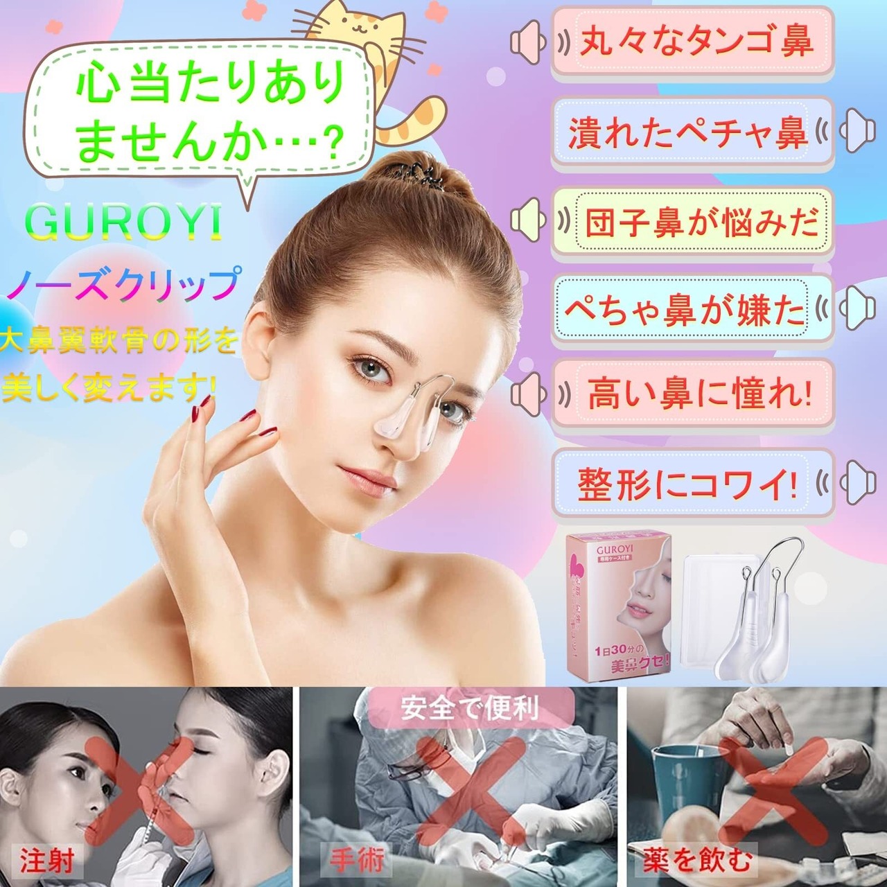 【GUROYI美鼻グッズは改良番が登場、感耐久性UP】発売から大ヒット中の「鼻筋セレブ」がさらにパワーアップして新登場!フィット感を高めた特殊シリコンと耐久性がアップしたチタンワイヤーでさらなる美鼻生活を。鼻は色々な軟骨で構成されており、毎日継続使用することで効果を発揮する 美容グッズです。