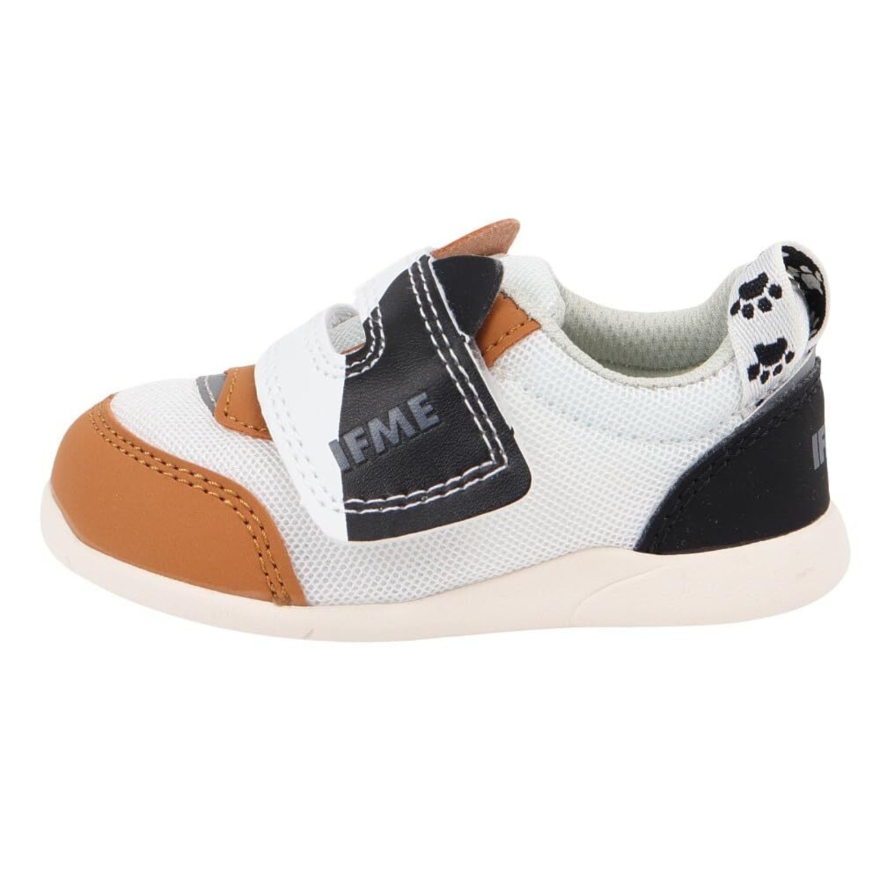 子供たちの足を考えた、さまざまな健康機能と、可愛らしいデザインを兼ね備えた、「IFME」のベビーシューズ。幼児の歩きは、「着地」、「すぐ蹴り出し」、とツーステップです。そんなヨチヨチ歩きをサポートするベビーシューズです。大きく開くベルト・ベロ構造になっているので、履かせたり脱がせたりが楽々です。小さなお子様のお出かけに、たのもしい味方です。【ウインドラスソーサ】(土踏まずのアーチ形成を助ける中敷):先端の2箇所のくぼみで、足指を曲げ伸ばしやすくし、足底筋膜を緊張させ、自然と土踏まずを鍛えられる効果があります。【コンビカラーインソール】履く時に左右を間違えないように、それぞれ別の色を使った中敷搭載。【アウトサイドストラップ】脱ぎ履きしやすいように、ぐっと、かかと部分を引っ張れるように外側にストラップを付けました。【軽量ソール】柔らかくて、強度もあるのに、軽量な素足のような履き心地のソール