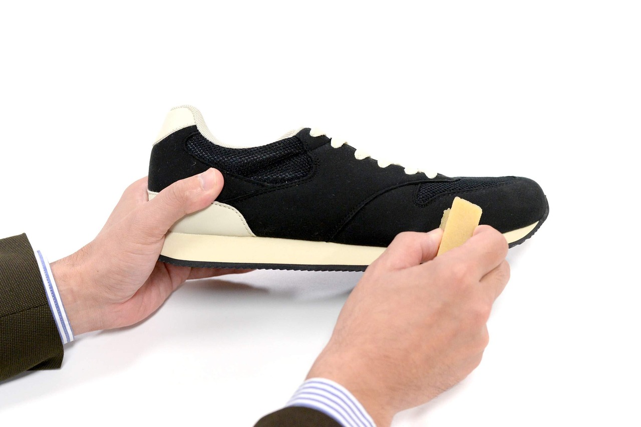 クリーナーは100%天然ゴムを使用しており、スエードの汚れをゴムに吸着させながら落とせます。