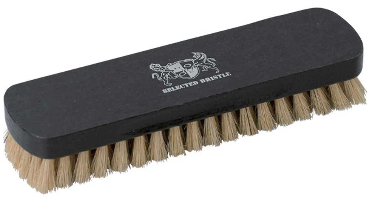 コシのある上質な天然豚毛100%使用の靴みがき用ブラシです。持ち手部分の幅が広く、靴クリームを使用したお手入れに最適です。
