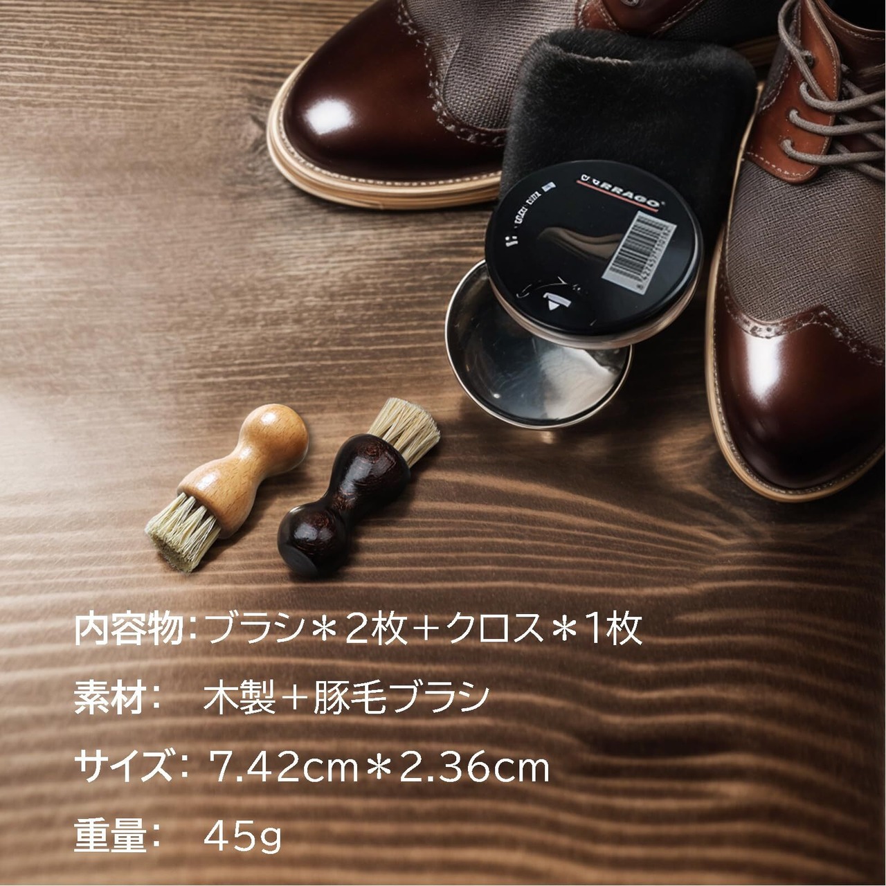 KOME 靴ブラシ シューケア ブラシ クリーム塗布用ブラシ ペネトレィトブラシ 豚毛製 靴磨き・レザーケア 2点入れ 靴磨きクロス付き