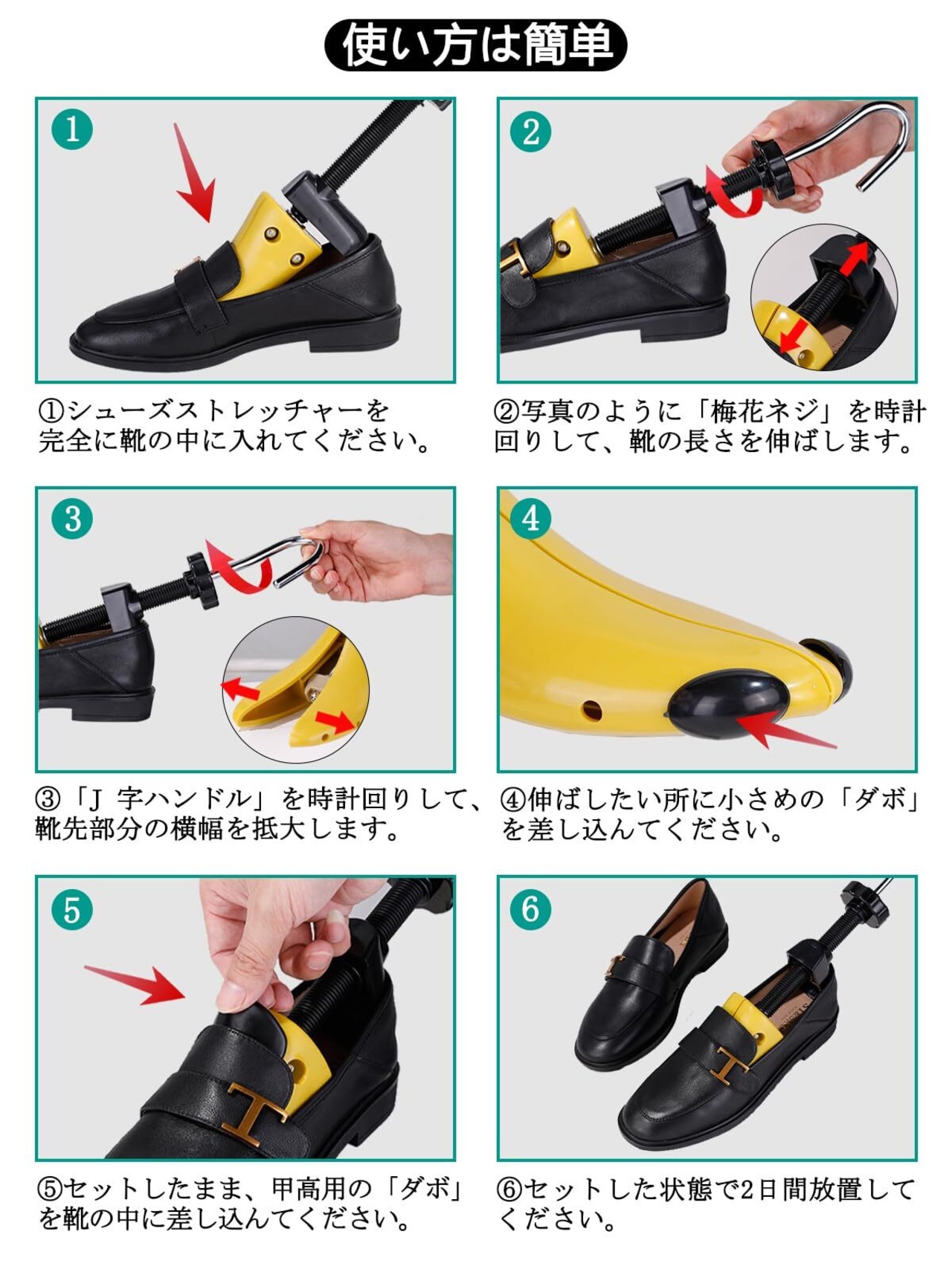 長く使えるデザインの特徴 :①ABS樹脂:安定性が良い、長くご愛用できます。表面光沢性も良い、外観性に優れます。 ②ステンレス:クロムを含んだ、さびない鋼鉄です。硬いポリウレタンや精密なステンレスステールを使い、長く使えます。この ストレッチャーは足の形に合わせて設計され、靴のあらゆる所までたどり着けます。