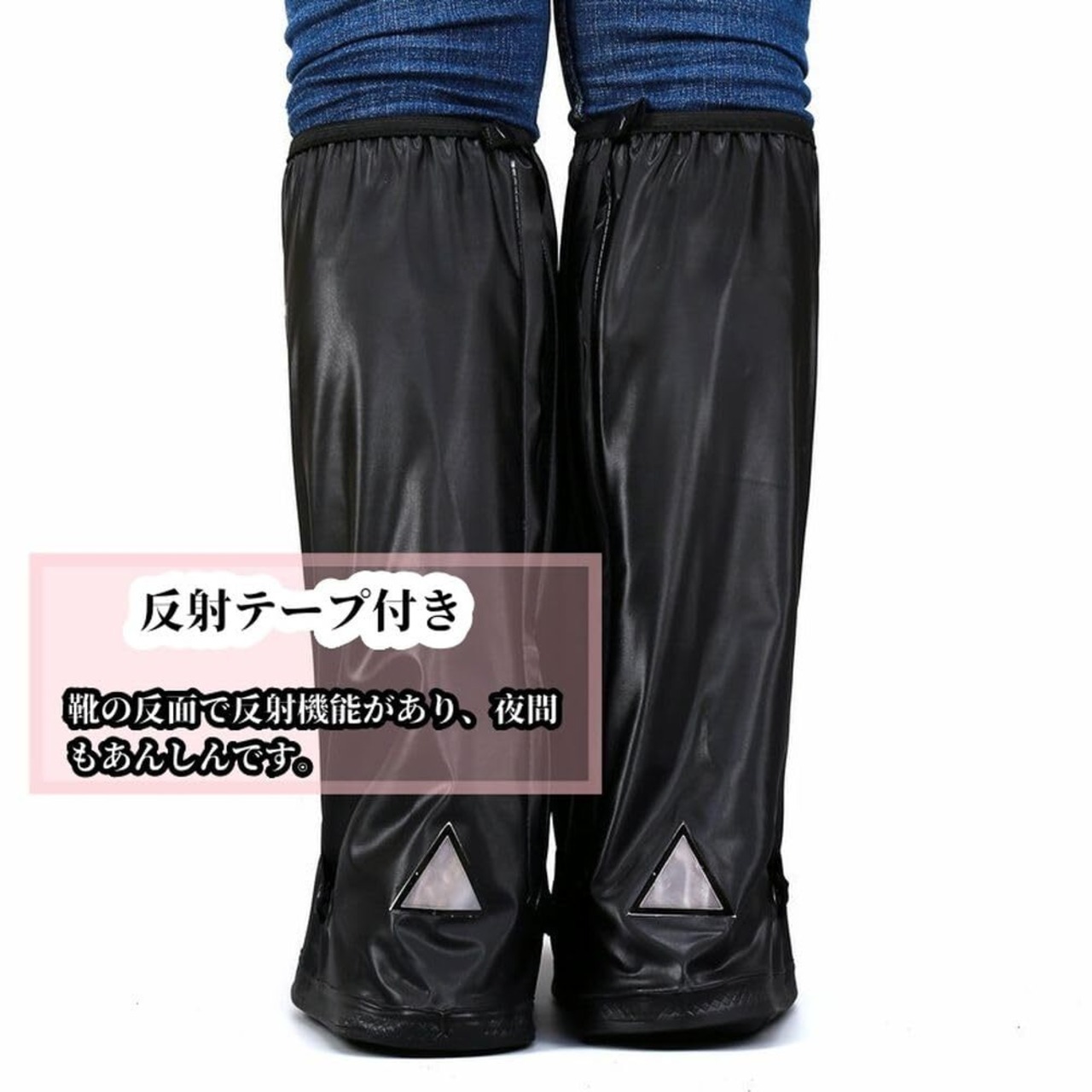 【ロング設計】ロングタイプのシューズカバーは、レインブーツのように足首までしっかりと覆い、水や泥が靴に入るのを防ぎます。