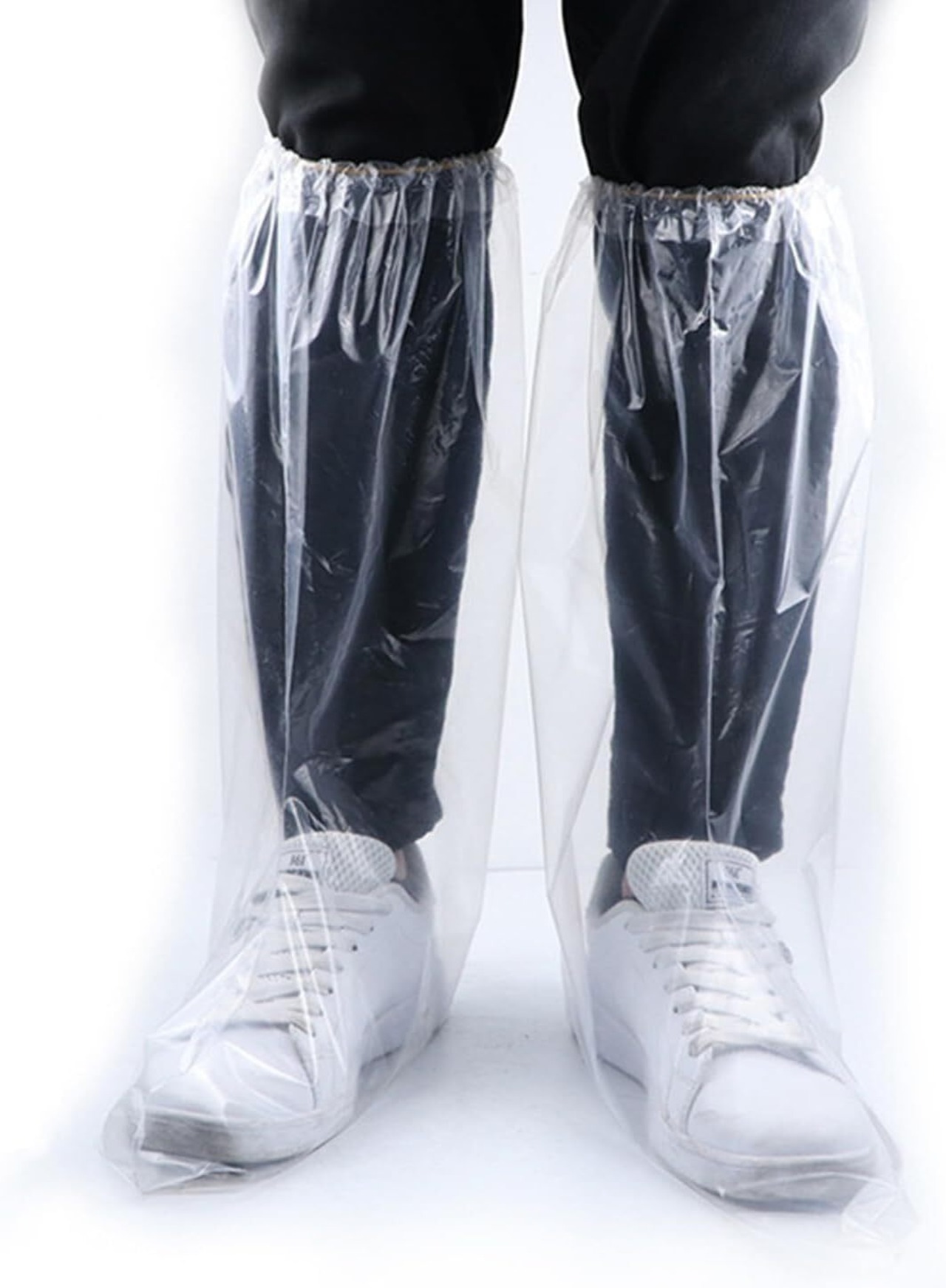 【防水・防塵・防滑り】使い捨て靴カバーは、雨の日などの突然の悪天候に適しています。非常に厚いタイプと優れた全体的な気密性により、レインシューズカバーは膝下まで覆い、ゴム部分も太めのサイズを使用していることで雨や水の防水、粉塵の侵入を防げます。靴カバーの表面に粒状があり、滑り止めの役割を果たすことができます。