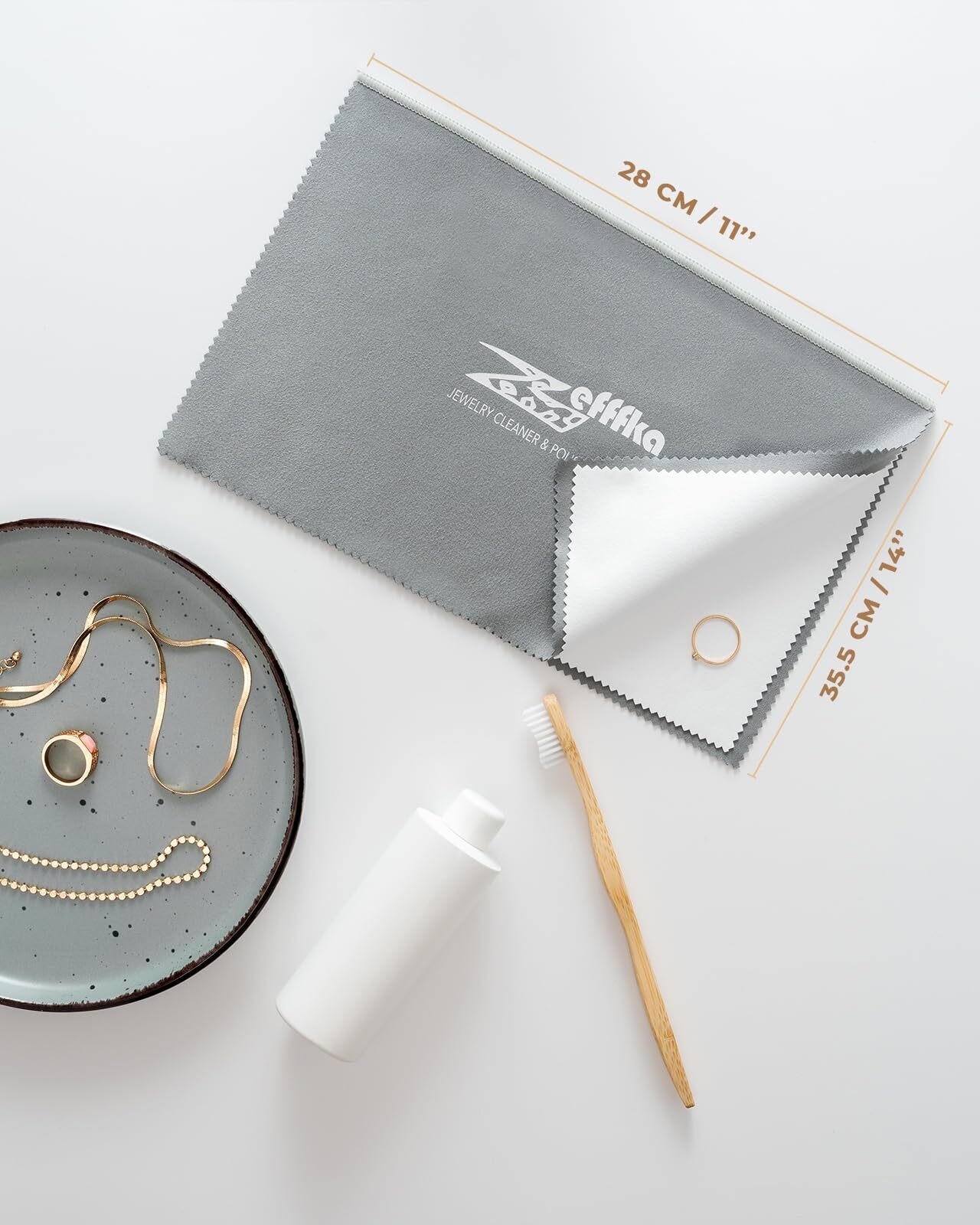 将来の保護:クリーニングと研磨に布を使用すると、ジュエリーを変色から保護する層が提供され、結果が最も長く持続します。