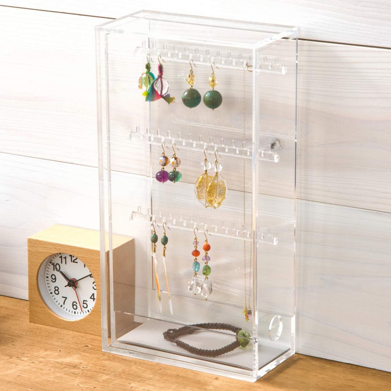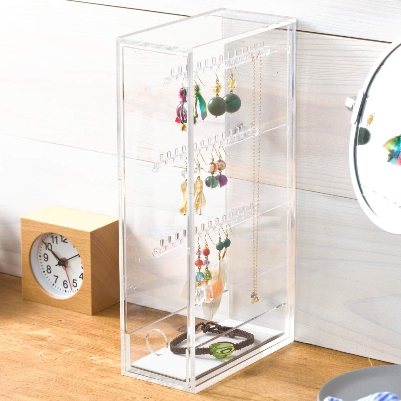 ネックレスやピアスを吊るして収納できる、スタンド型の中身が見える収納用品です。