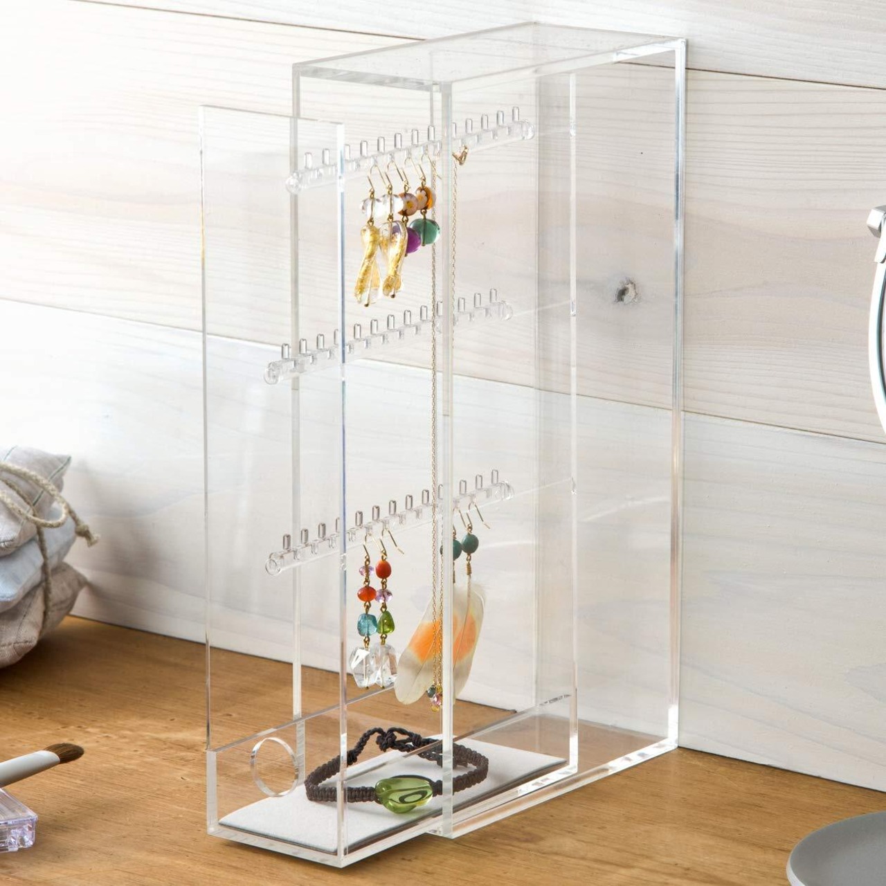 特徴:ネックレスやピアスを吊るして収納できる、スタンド型の中身が見える収納用品です。