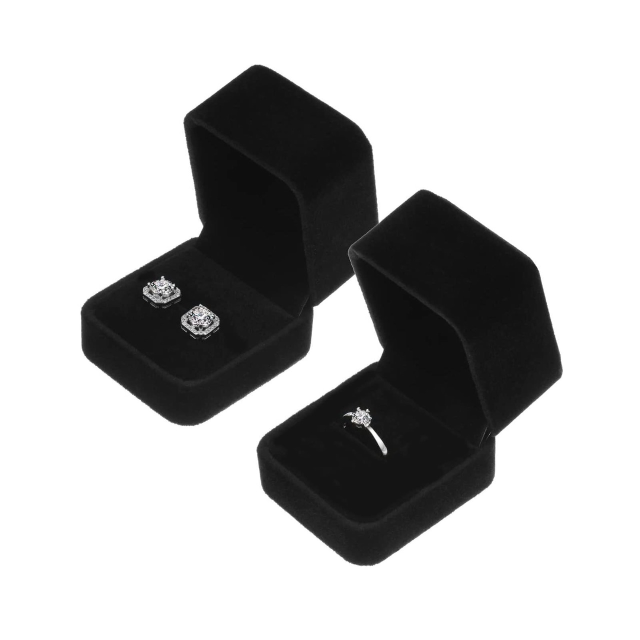 黒い指輪ケース,ベルベット婚約リングボックス,ジュエリーギフトボックス,リングイヤリングホルダー,指輪収納用箱,ポケットサイズ プロポーズ用 サプライズ (リングボックス)