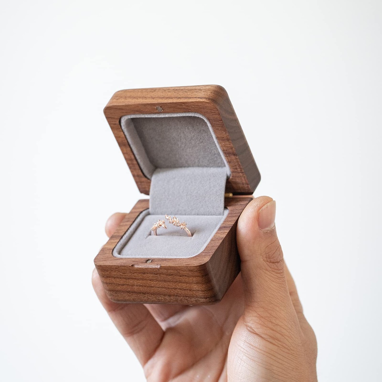 高品質:Muso Wood ウォールナット製の指輪ケースは、最高品質のウォールナット材を使用して手作りされています。これにより、高級感のある美しい仕上りが実現し、長持ちする耐久性を備えています。