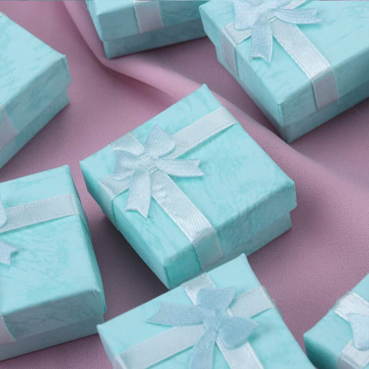 Frcolor ギフトボックス アクセサリー紙箱 蝶結び アクセサリーケース 正方形 指輪 ピアス リング ジュエリー収納ボックス 32個セット(ブルー)
