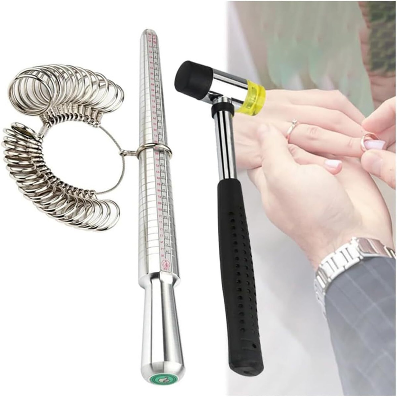 3点セットサイズ&指輪 サイズ棒 リングゲージ ハンマー 1号から28号まで対応 日本標準規格 サイズ 調整 プロ仕様 補修ツール ジュエリー用 工具 道具