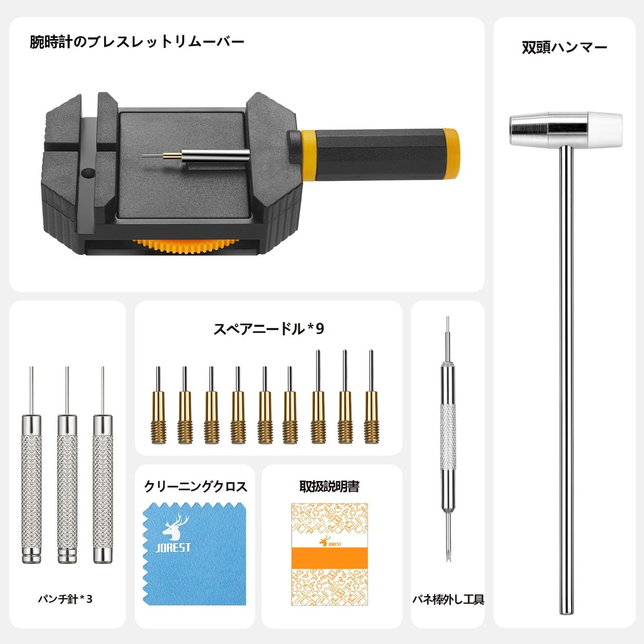 【JOREST】腕時計 ベルト調整 工具セット、時計 ピン 抜き 工具、腕時計 バンド調整、ピン 外し 工具、取扱説明書(英語版)