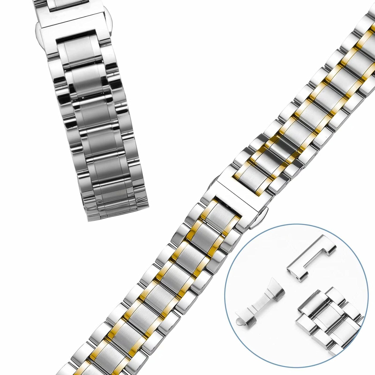 [SEUER\時仕] SEURE時仕 時計ベルト 12mm 14mm-24mm ステンレス鋼 防水 防汗 Dバックル 両開き/観音開き尾錠 錆び難い ウォッチバンド 金属腕時計ベルト 交換工具付き ボックス付き 男女兼用
