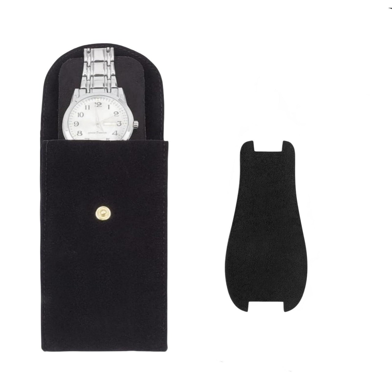 腕時計ポーチ ベルベット 腕時計収納バッグ 持ち運び用 中板付き 防塵 衝撃保護 13x7.5x0.8cm 時計ホルダー 男女兼用 ギフトにも最適 (ブラック)