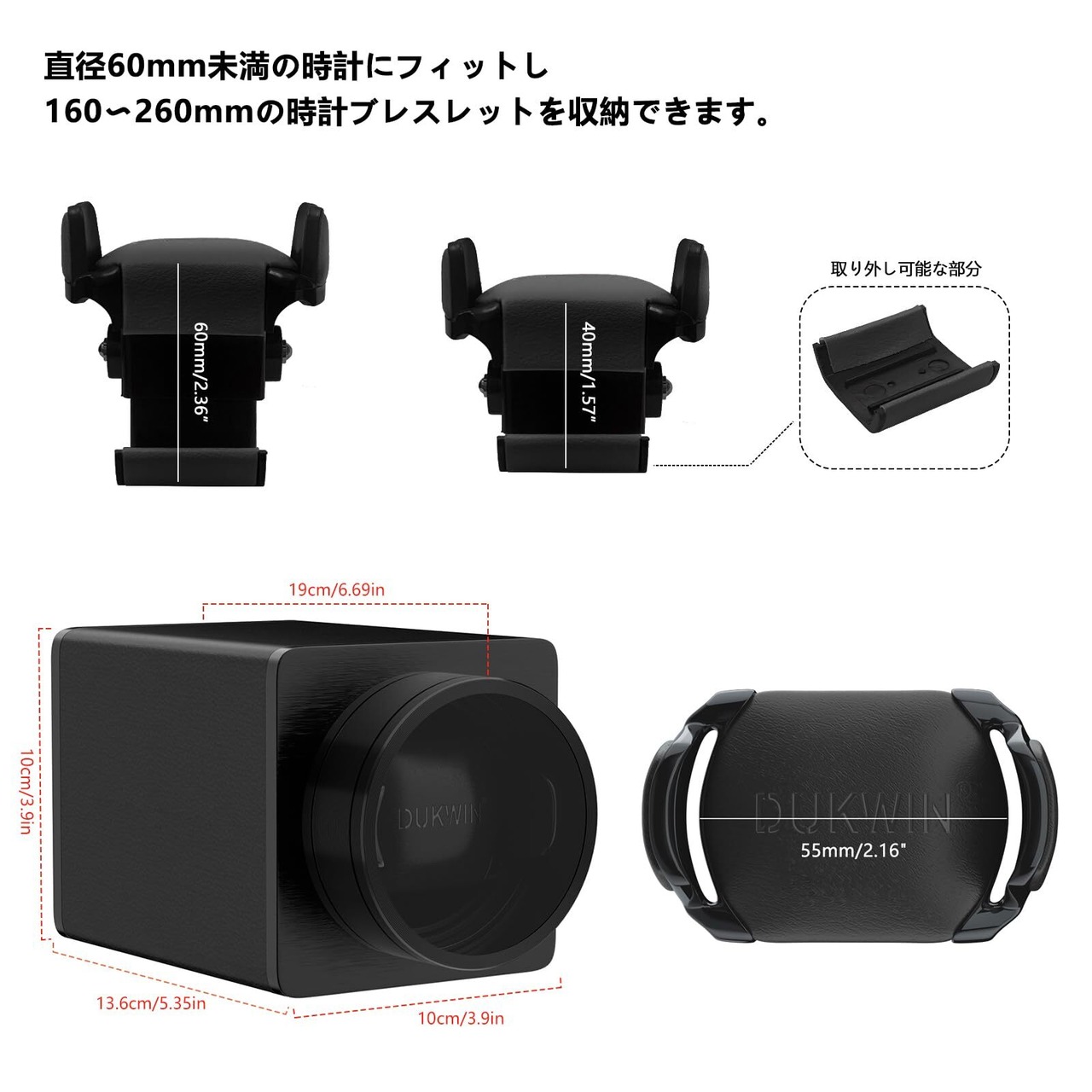 【2つの給電方式・柔軟性時計枕】USB充電または2本のバッテリー(別売)で動作します。調節可能な時計枕は、男女の腕時計は全部使えます。腕時計バンドの直径は58mm/2.28インチ、厚さは20mm/0.79インチで、ブレスレット/手首の長さは35mm/1.37インチ~62mm/2.44インチの時計に適しています。