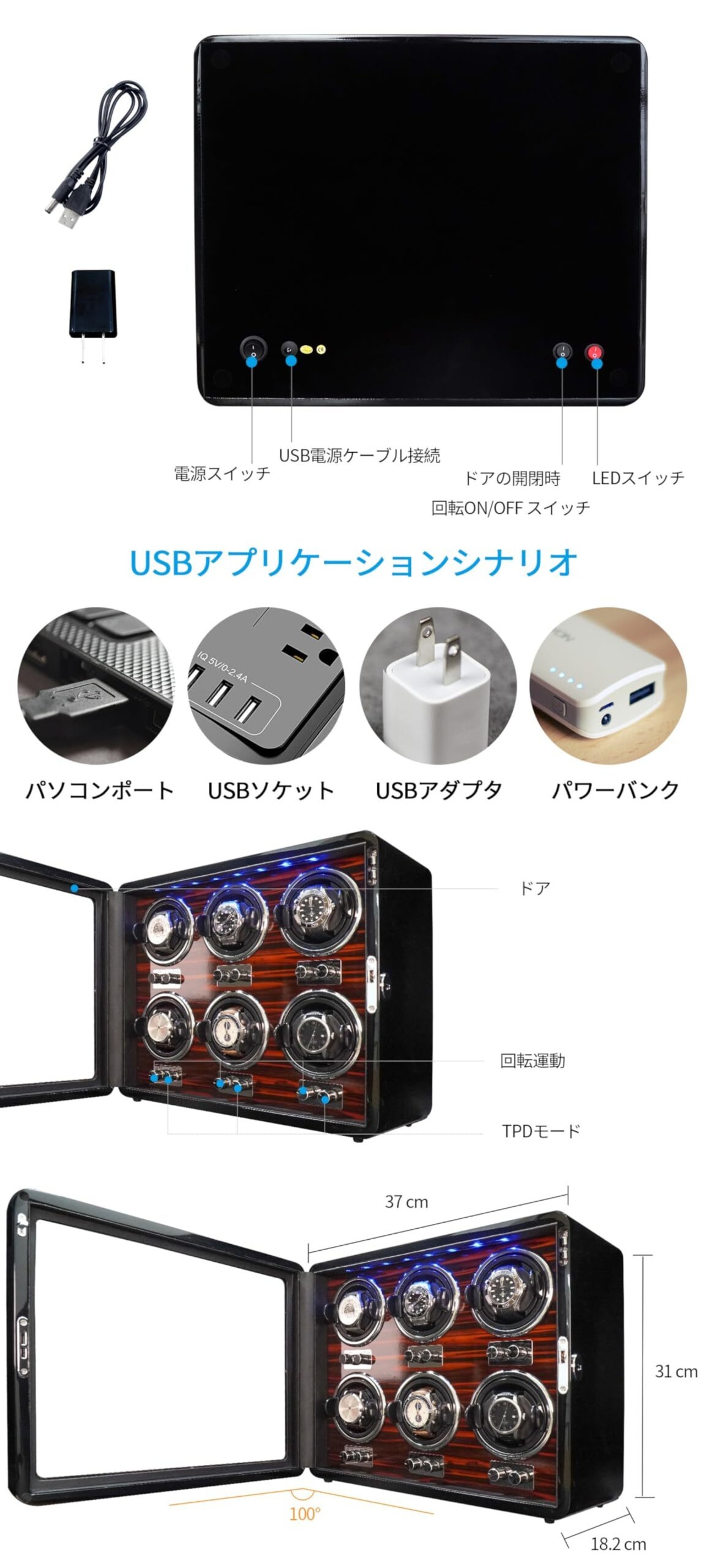 ハイエンドの人気デザイン : 静音設計、防磁設計、動作音が非常に静かなので、寝室や書斎に置くこともおすすめします。6本腕時計 収納、内蔵のLED照明、暗くでも素早く正確に腕時計を入手できます、落ち着いた雰囲気を醸し出します。インターロック機能付き、扉を開いた際ホルダーの回転を自動停止。
