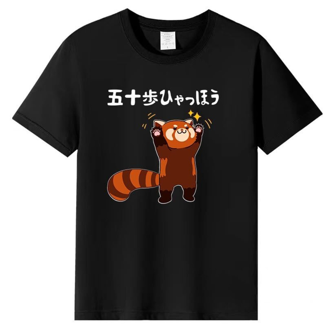 五十歩ひゃっほう 面白い Tシャツ レッサーパンダ ネタ ことわざ ことわざのもじり ジョーク ギャグ おもしろtシャツ おもしろ メンズ 半袖 プレゼント パロディ 人気 無地 軽い 柔らかい肌触り 通勤 通学
