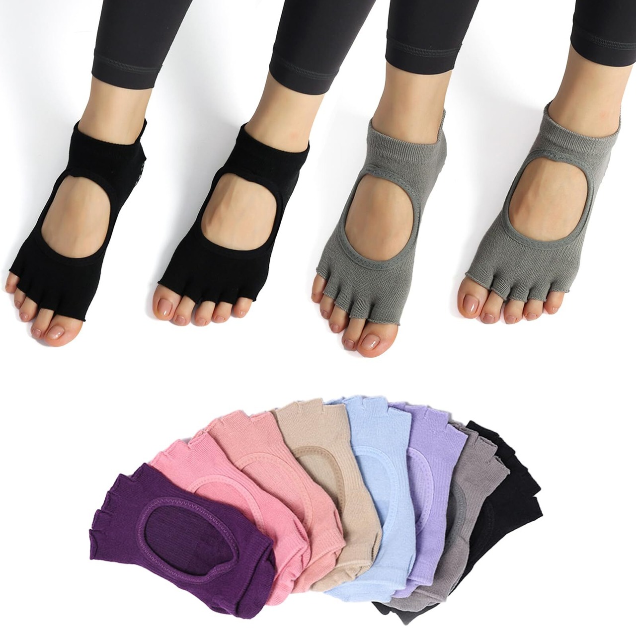 [Amzbag] ヨガソックス ピラティス 靴下【5本指・3D滑り止め・ズレない3Dヒール】 ピラティスソックス ヨガ靴下 通気性 抗菌防臭 速乾 色あせない 汗対策 おしゃれ 室内運動/自宅用 ダンス バレエ ジム [指あり/指なし選択可]