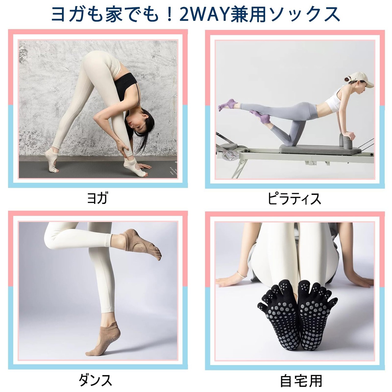 【滑り止め設計で安全な動きをサポート】 Amzbagピラティス靴下は、裏面に高品質な滑り止めシリコンが付いており、ヨガやピラティス、ダンス中でも安心してポーズを取ることができます。