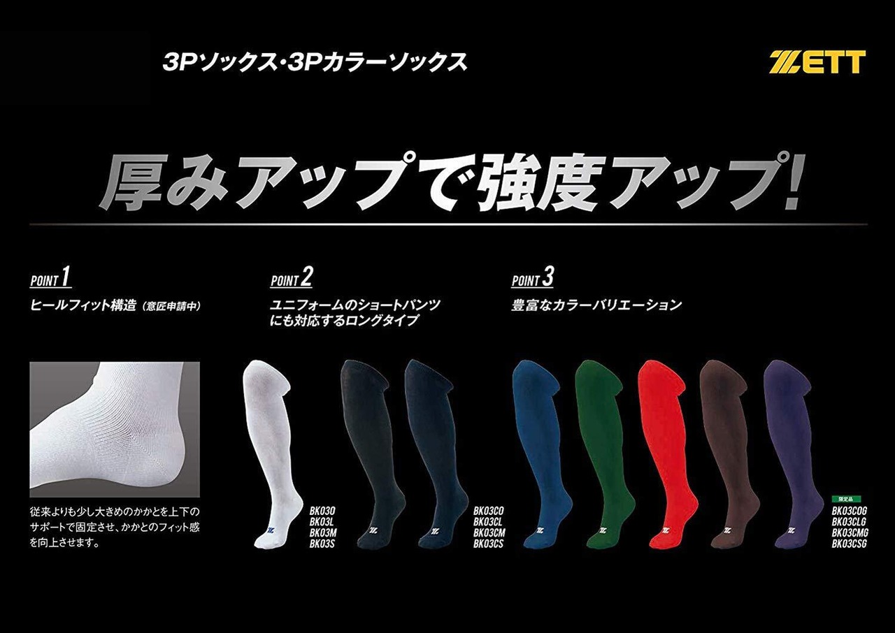 ゼット 3P カラーソックス アンダーソックス ロングソックス ハイソックス 3足組 BK03CS
