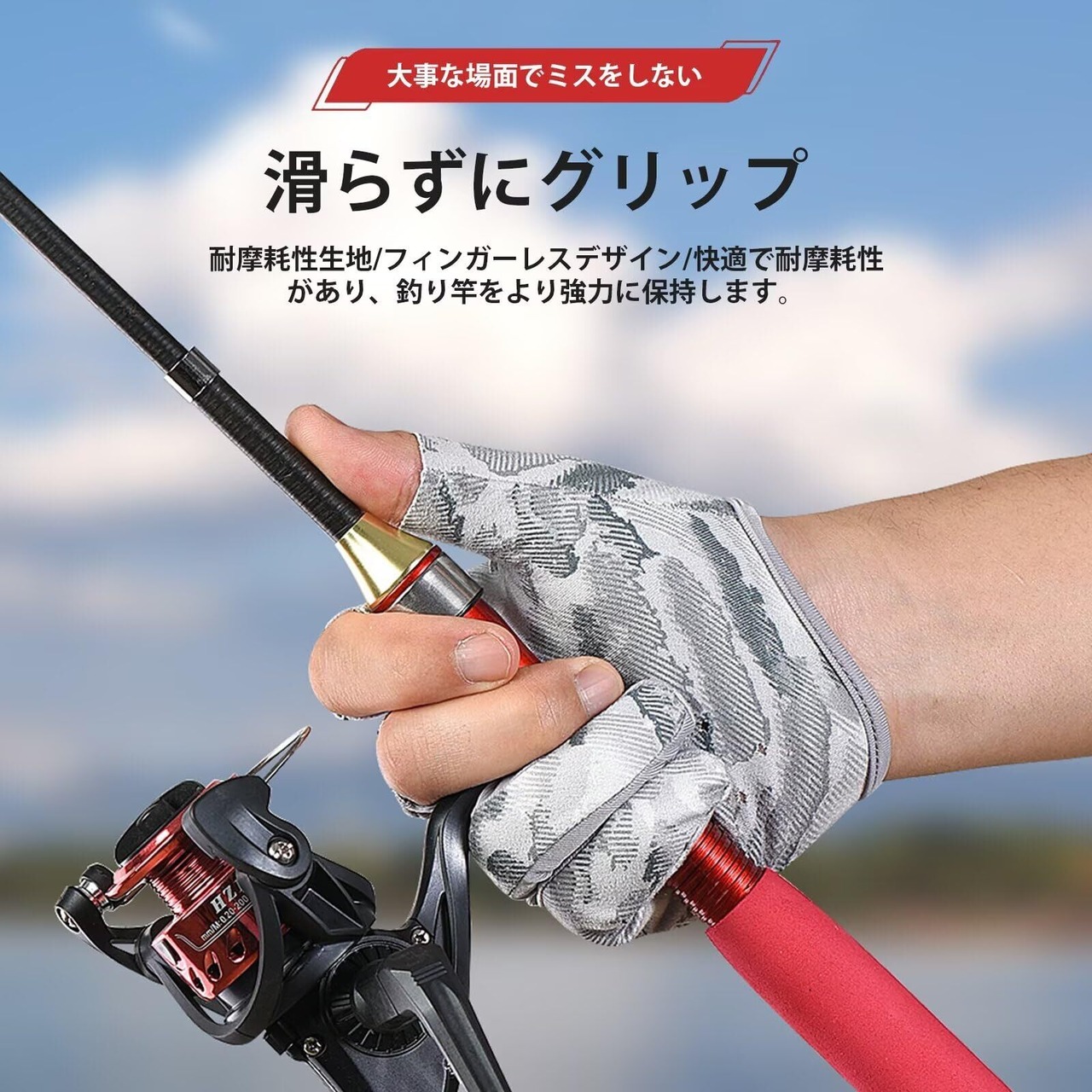 【日焼け防止手袋】UPF 50+のUV保護機能を持つフィンガーレスフィッシンググローブで、有害な紫外線から手を守ります。釣り、セーリング、ボート、サイクリングなど、さまざまなアクティビティに最適です。